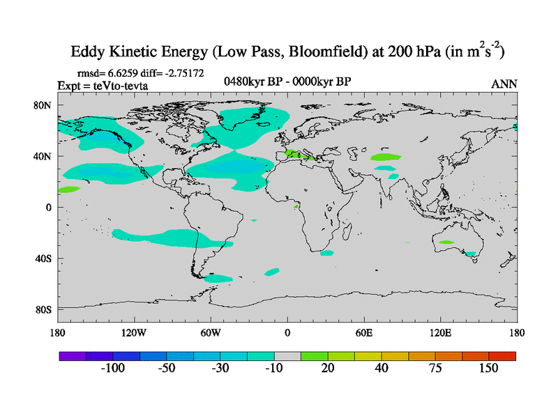 Low Pass Eddy Kinetic Energy at 200 hPa