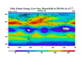 Low Pass Eddy Kinetic Energy at 200 hPa