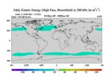 Low Pass Eddy Kinetic Energy at 200 hPa