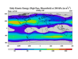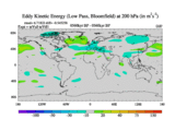 Low Pass Eddy Kinetic Energy at 200 hPa