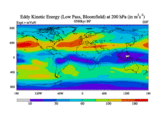 Low Pass Eddy Kinetic Energy at 200 hPa