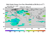 Low Pass Eddy Kinetic Energy at 200 hPa