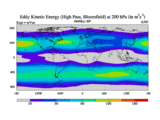 Low Pass Eddy Kinetic Energy at 200 hPa