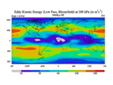 Low Pass Eddy Kinetic Energy at 200 hPa