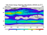 Low Pass Eddy Kinetic Energy at 200 hPa