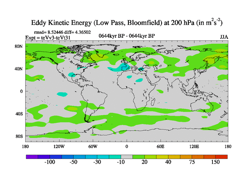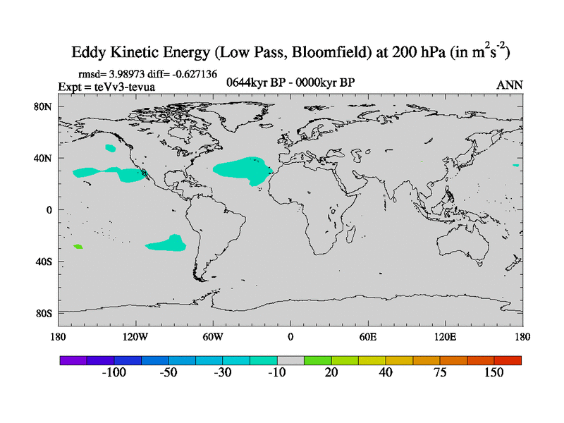 Low Pass Eddy Kinetic Energy at 200 hPa