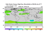 Low Pass Eddy Kinetic Energy at 200 hPa