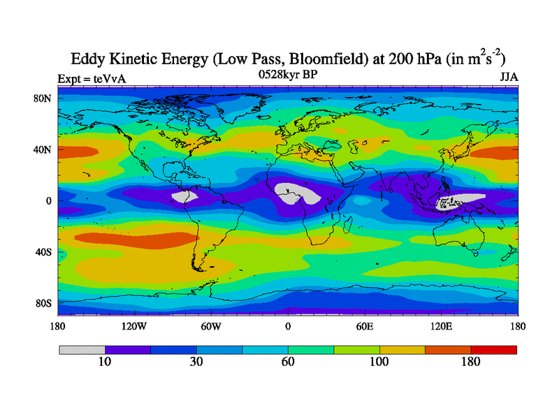 Low Pass Eddy Kinetic Energy at 200 hPa