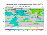 Low Pass Eddy Kinetic Energy at 200 hPa