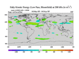 Low Pass Eddy Kinetic Energy at 200 hPa