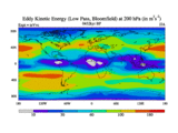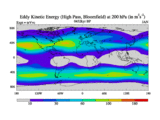 Low Pass Eddy Kinetic Energy at 200 hPa