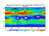 Low Pass Eddy Kinetic Energy at 200 hPa