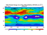 Low Pass Eddy Kinetic Energy at 200 hPa