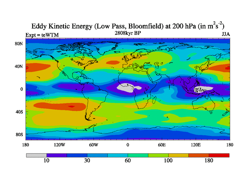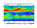 Low Pass Eddy Kinetic Energy at 200 hPa