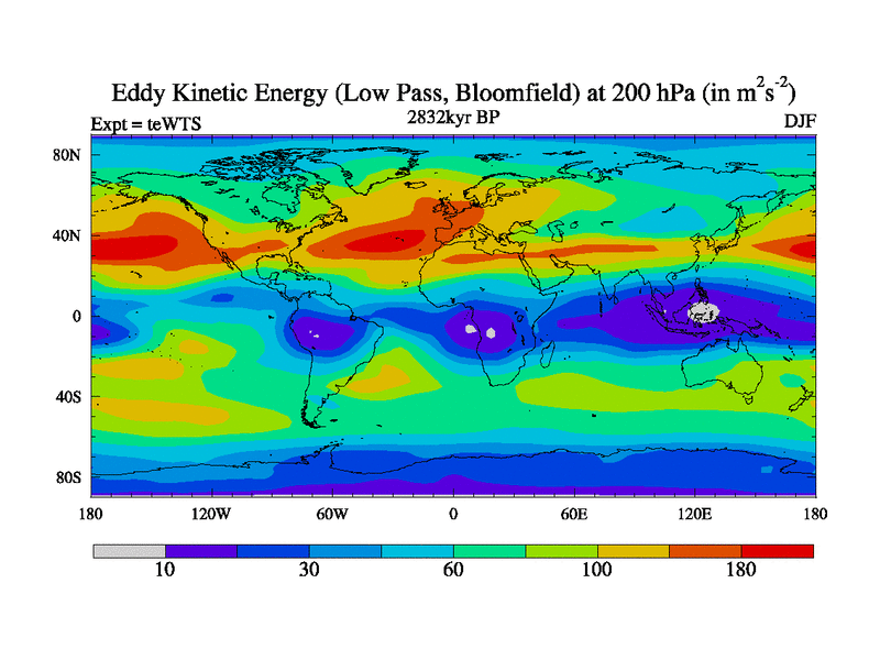 Low Pass Eddy Kinetic Energy at 200 hPa