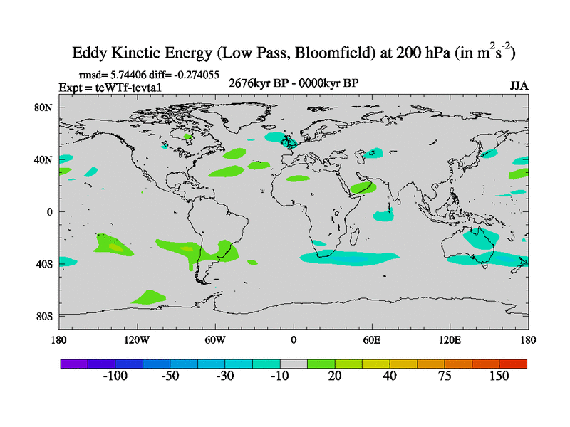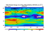 Low Pass Eddy Kinetic Energy at 200 hPa