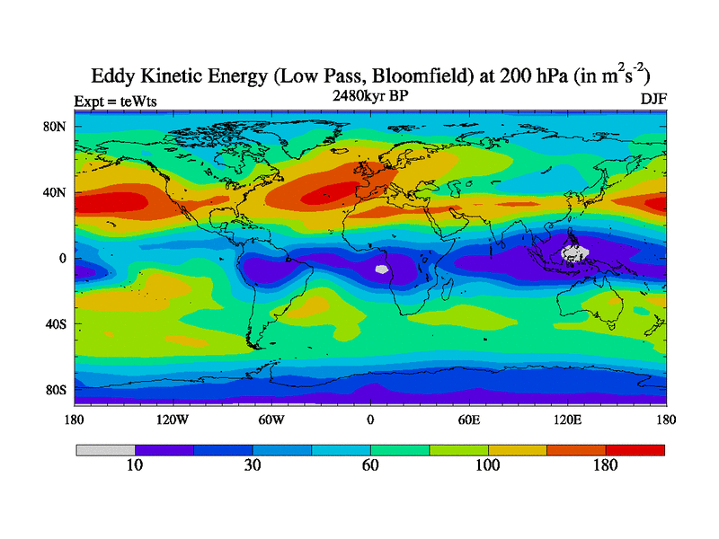 Low Pass Eddy Kinetic Energy at 200 hPa