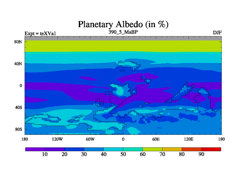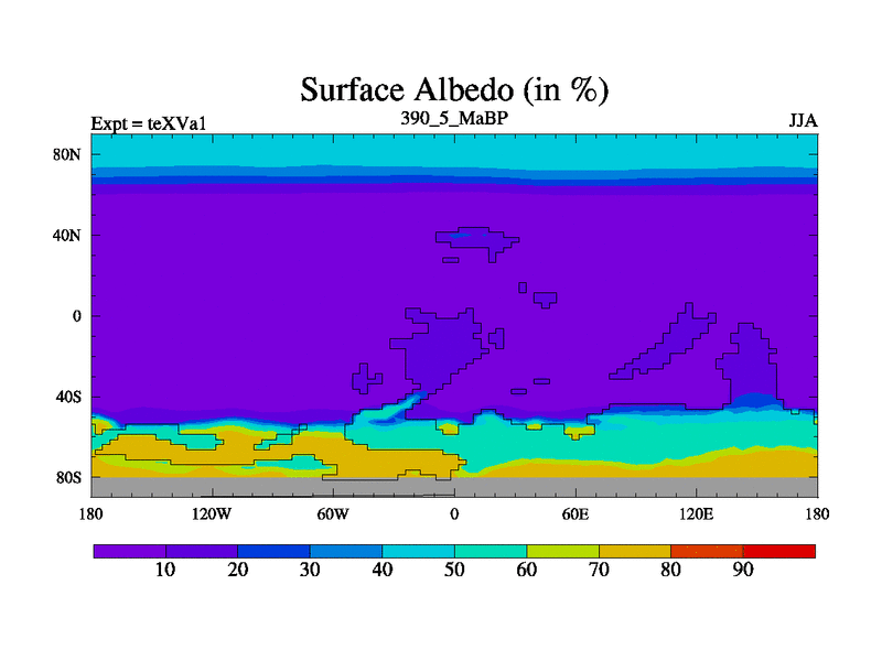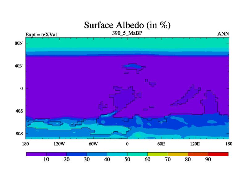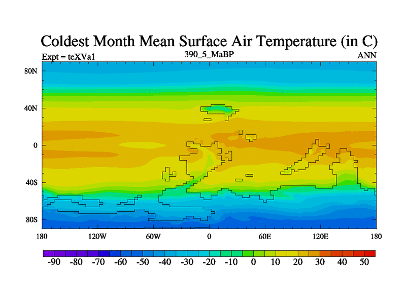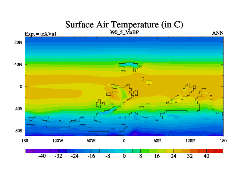 This is the 390.5 Ma simulation using the Scotese palaeogeographies.