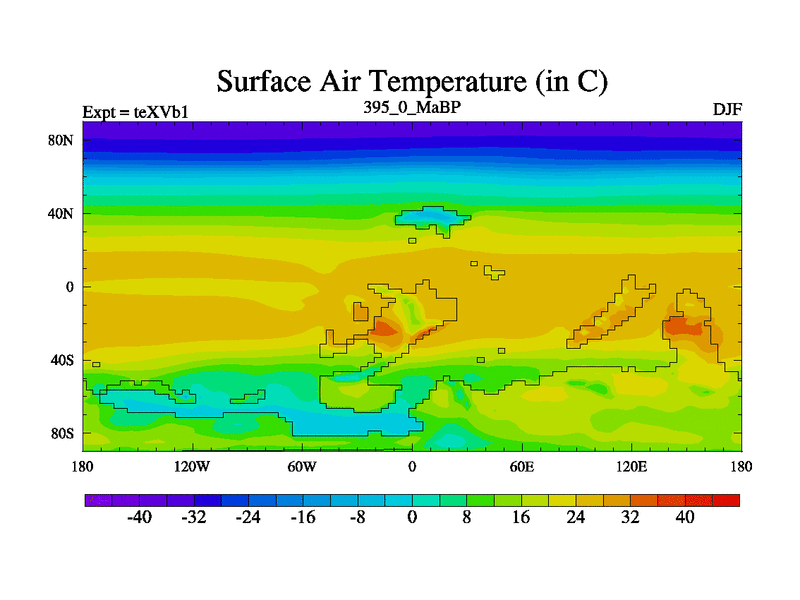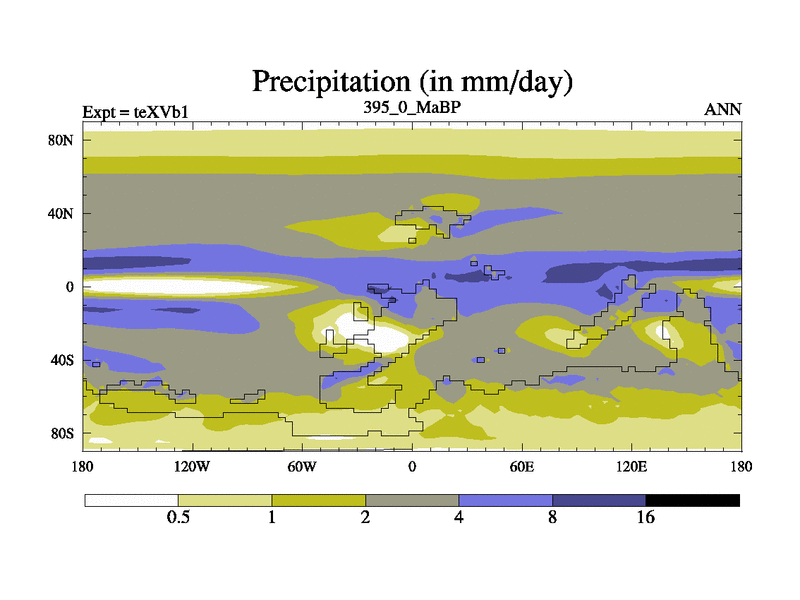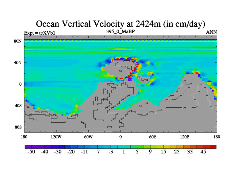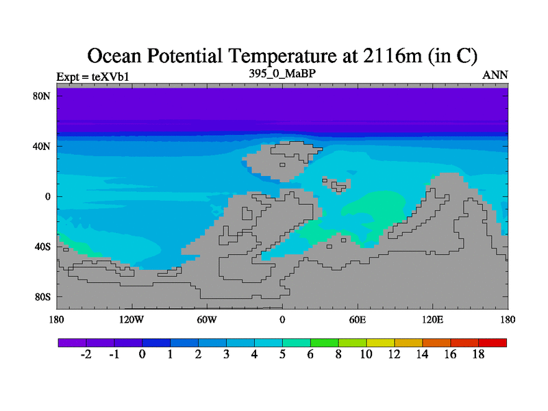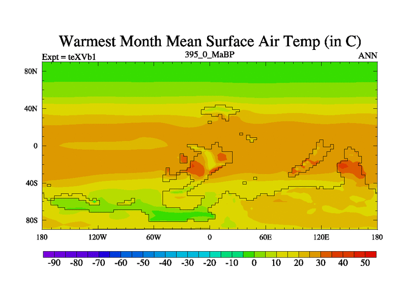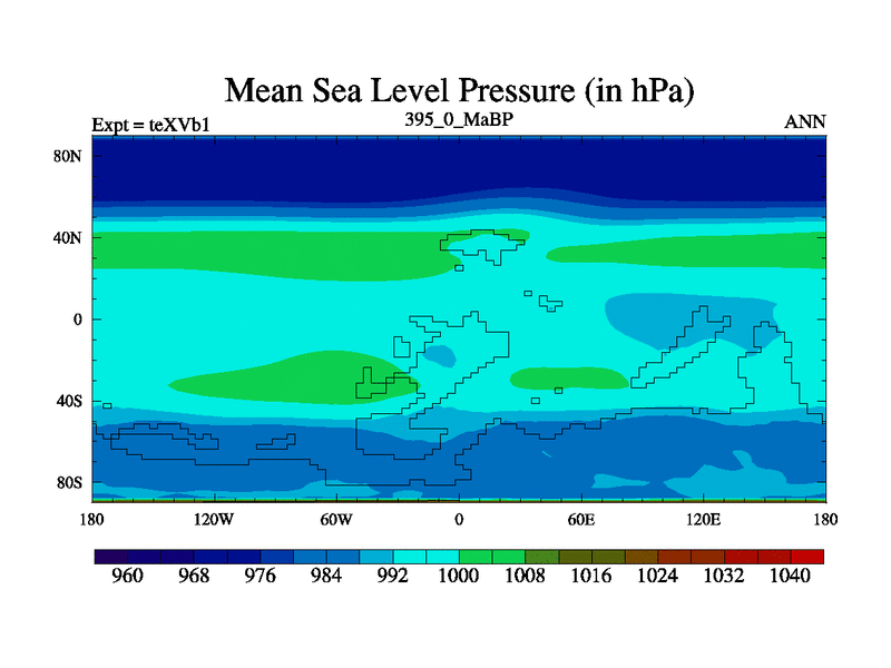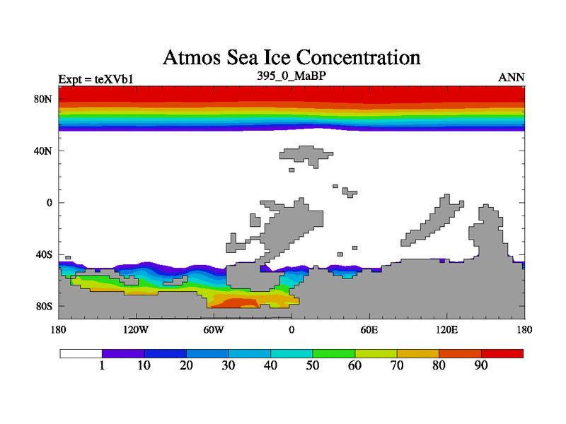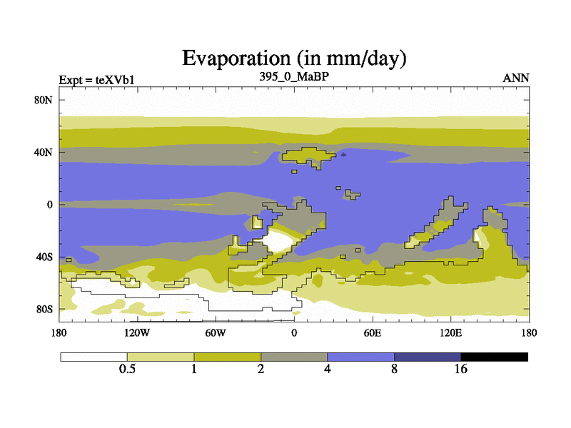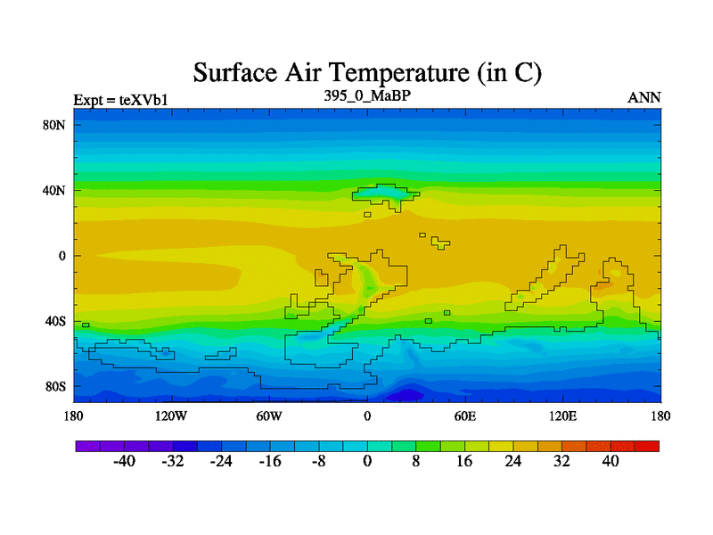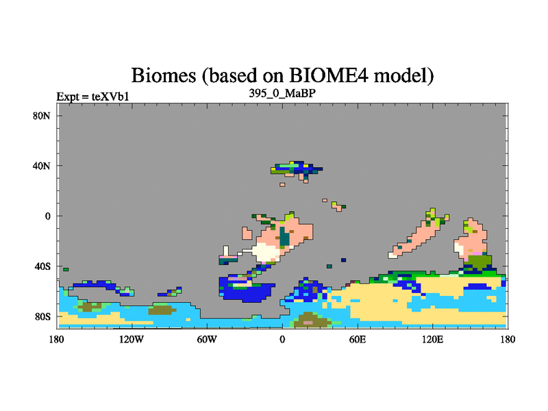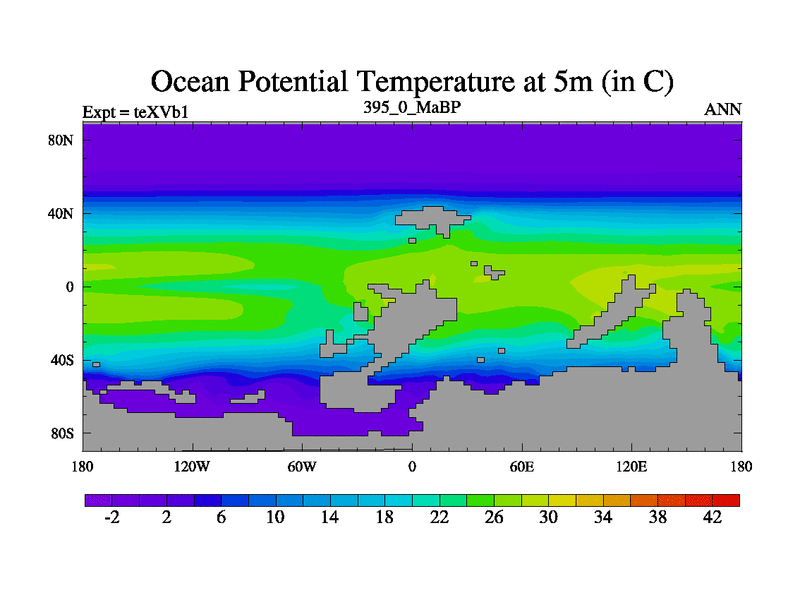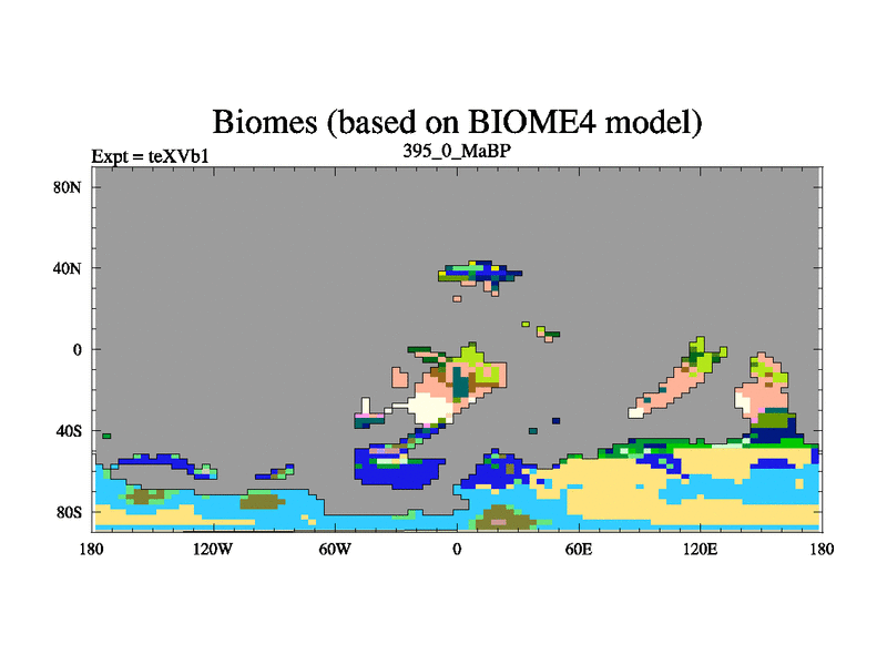This is the 395.0 Ma simulation using the Scotese palaeogeographies.