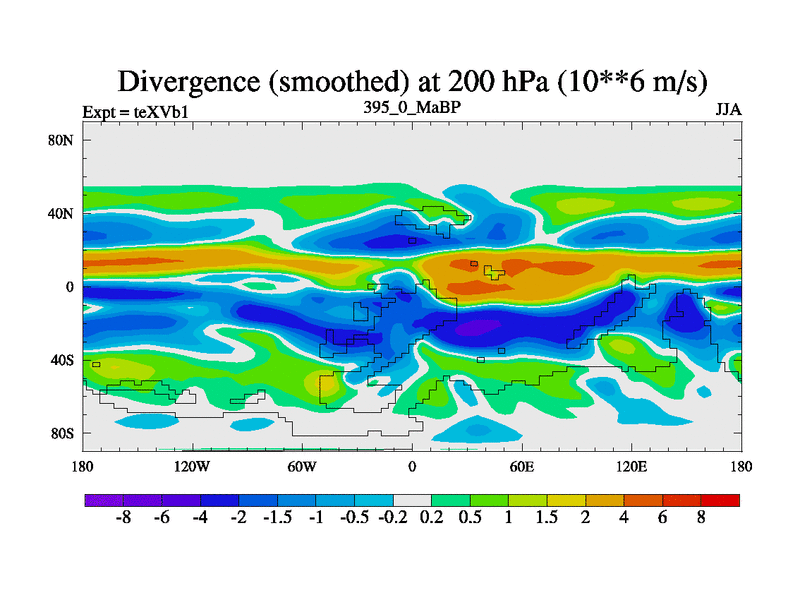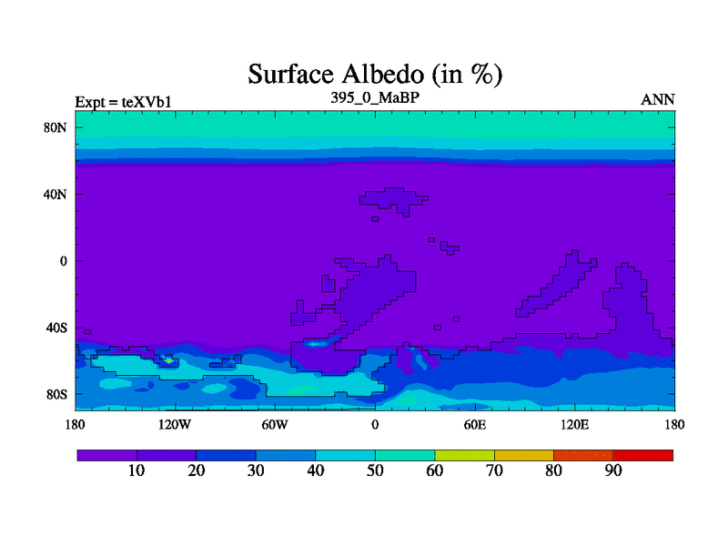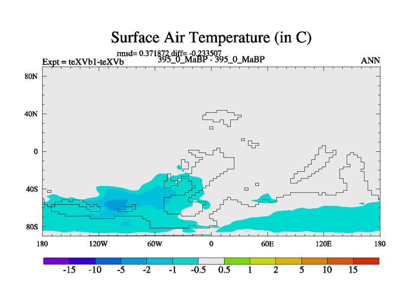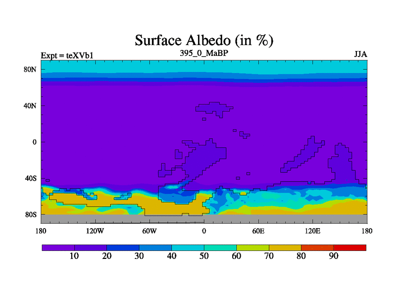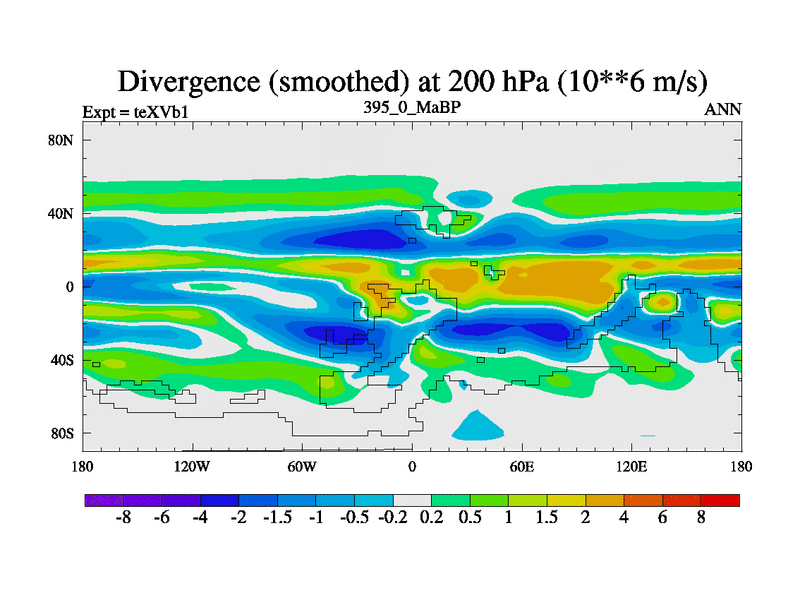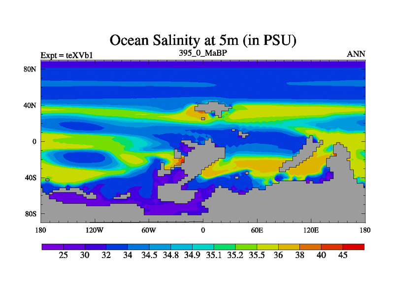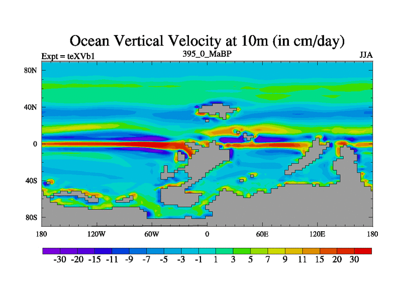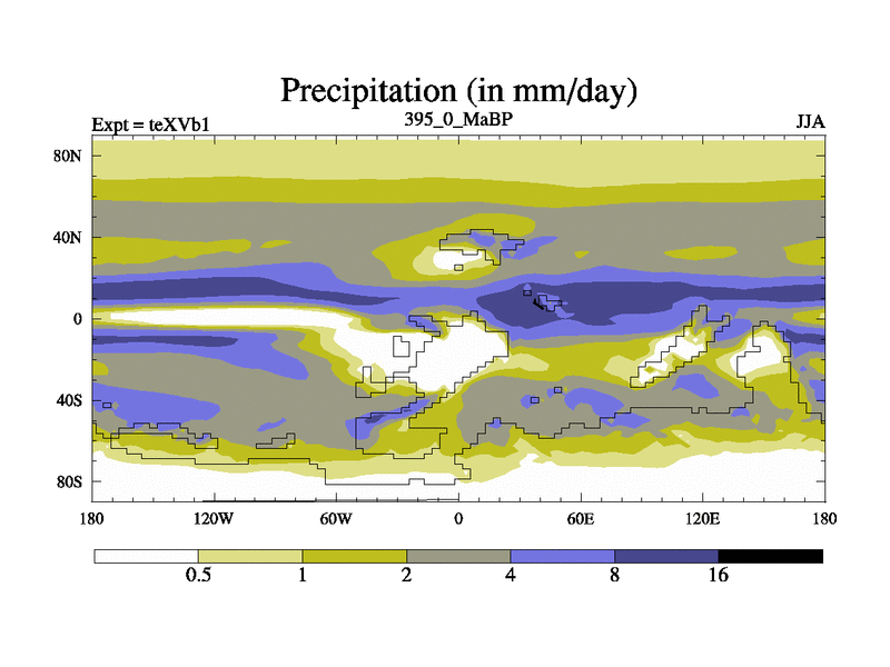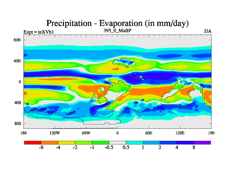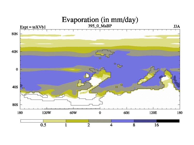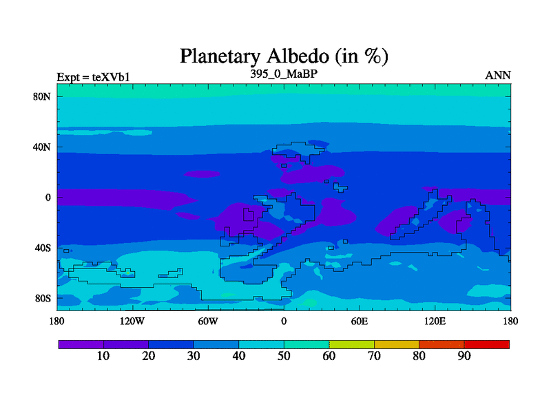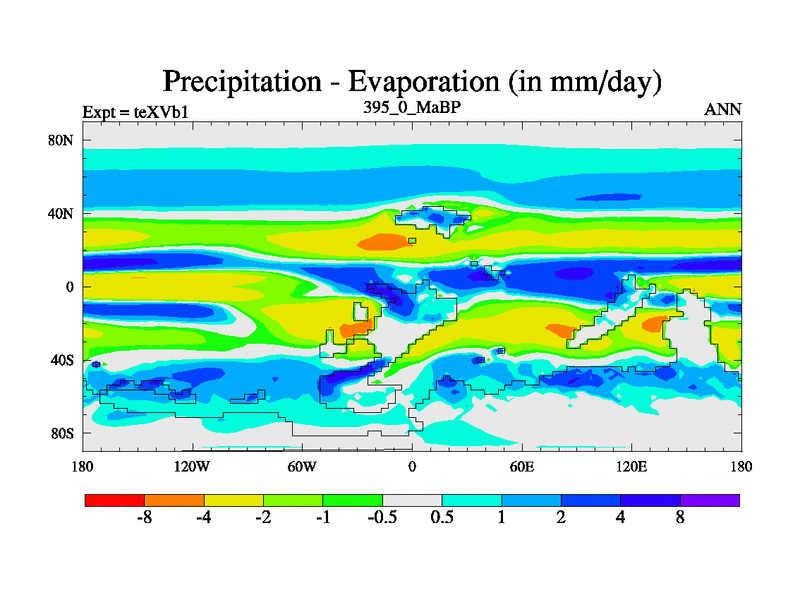 This is the 395.0 Ma simulation using the Scotese palaeogeographies.