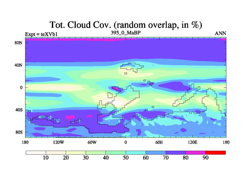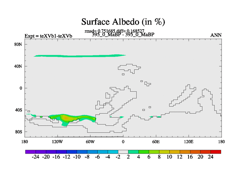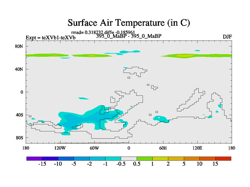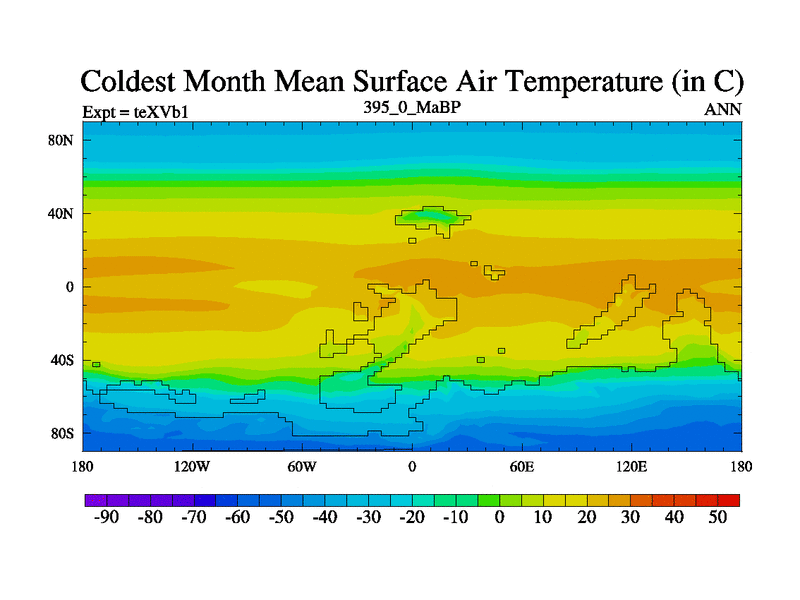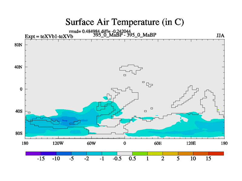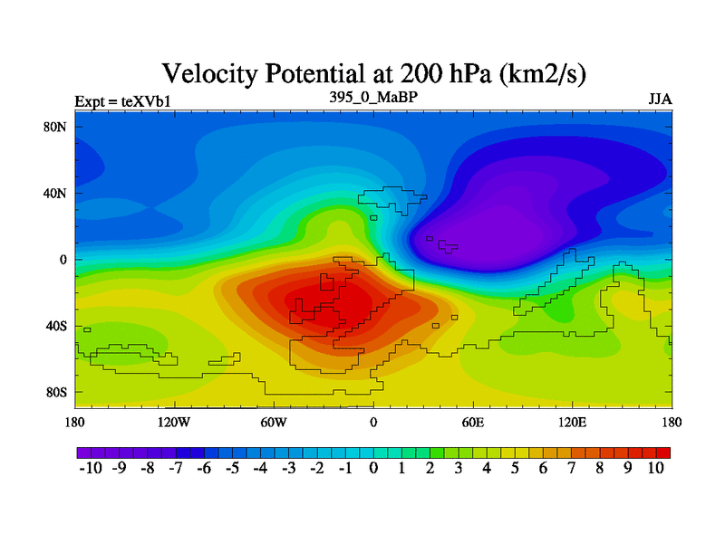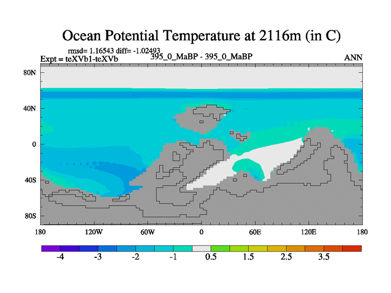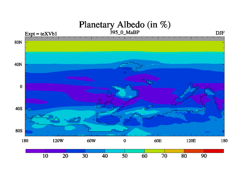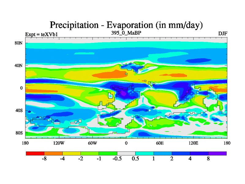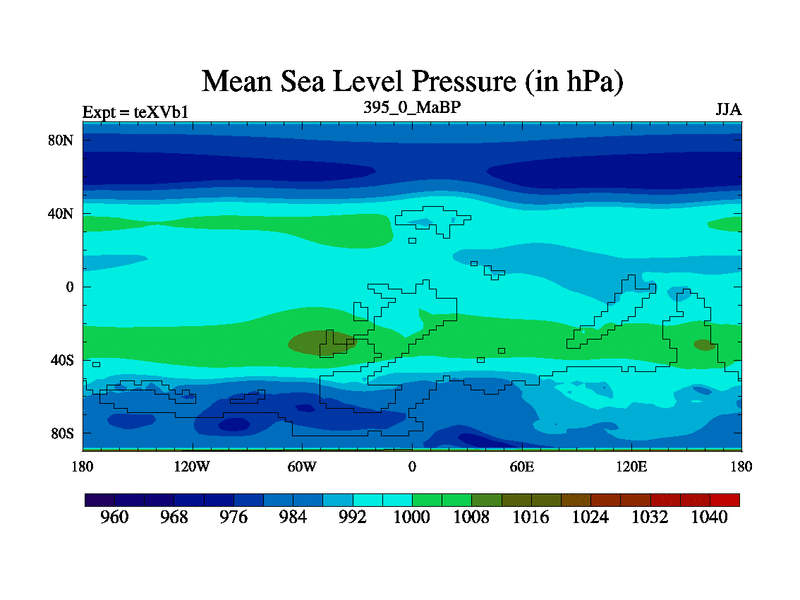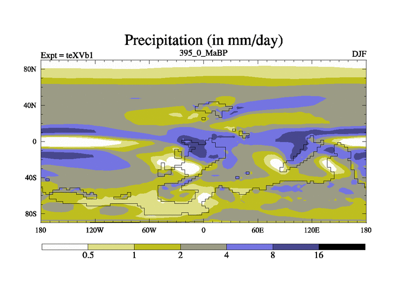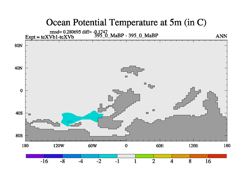 This is the 395.0 Ma simulation using the Scotese palaeogeographies.