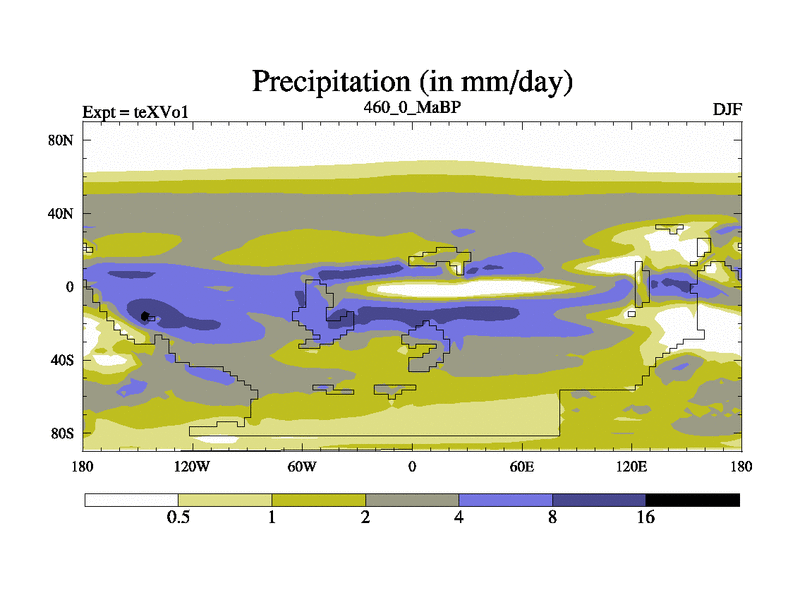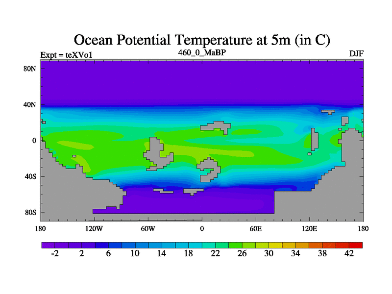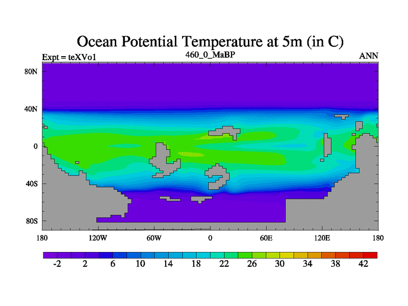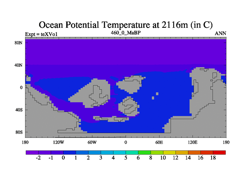This is the 460.0 Ma simulation using the Scotese palaeogeographies.