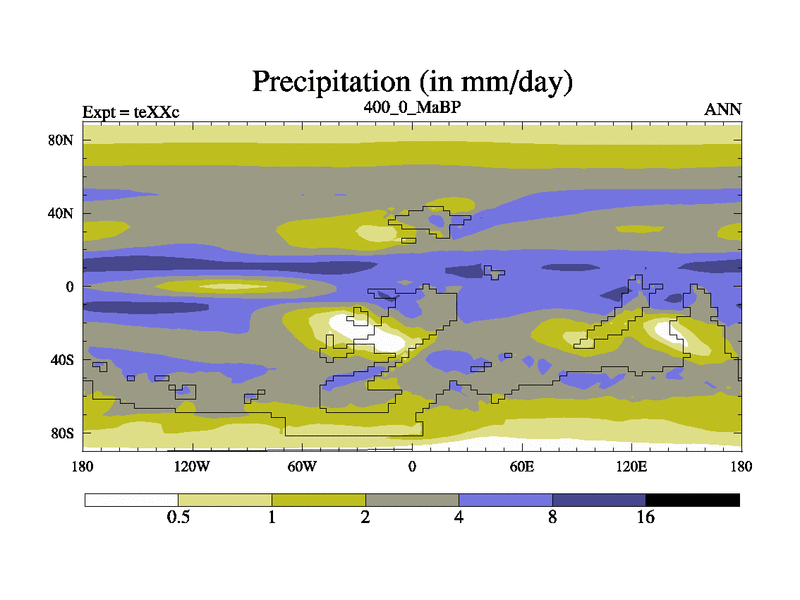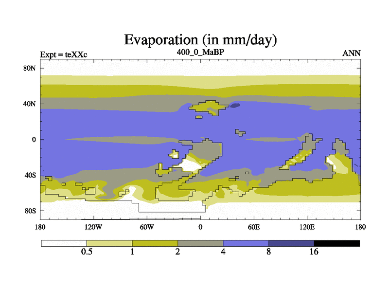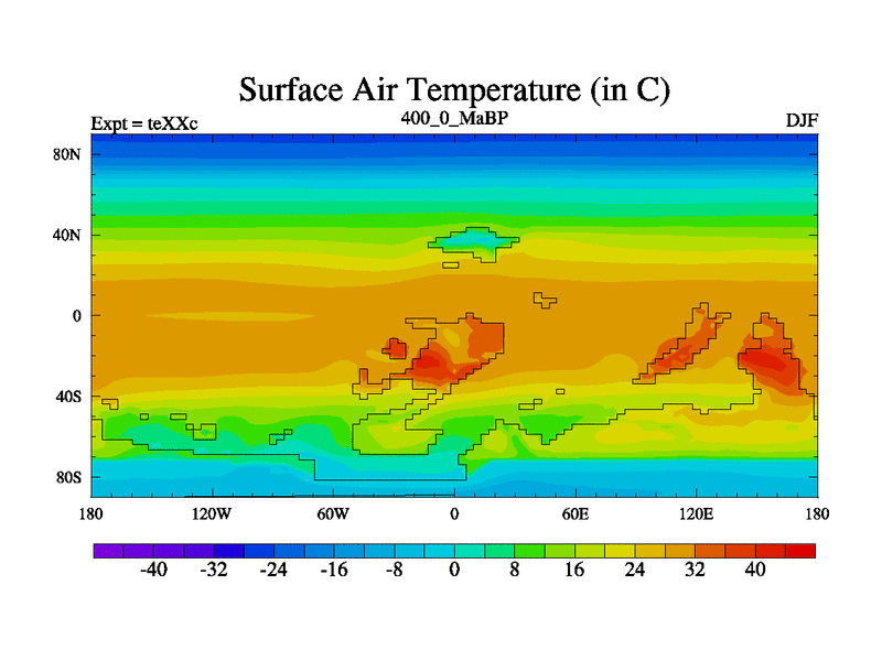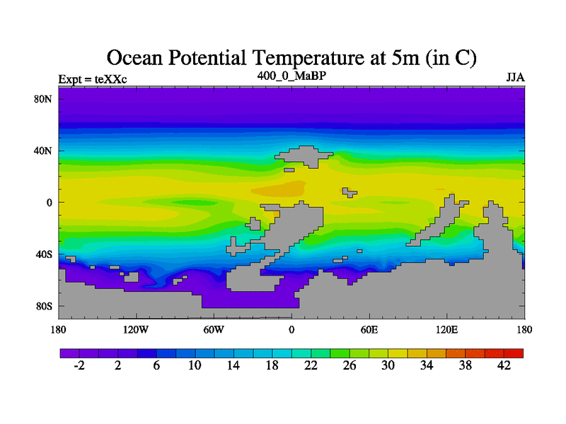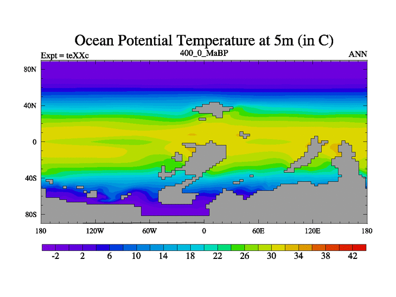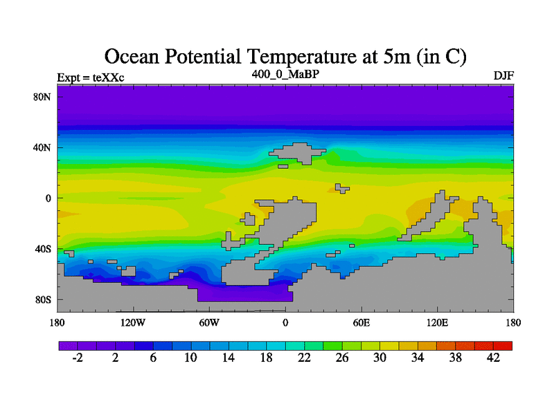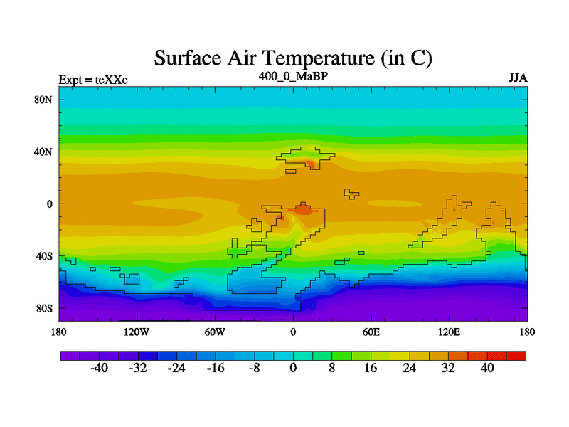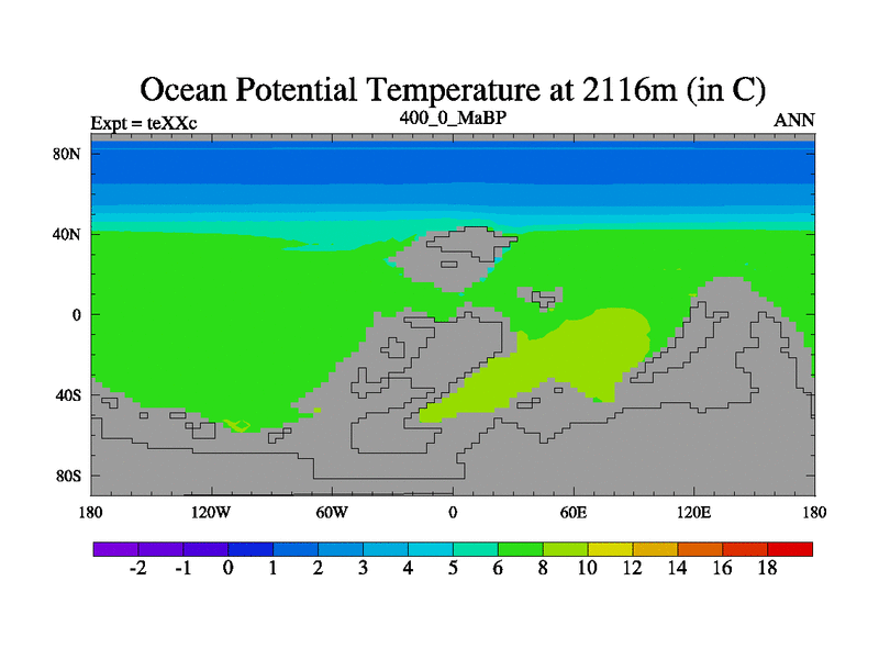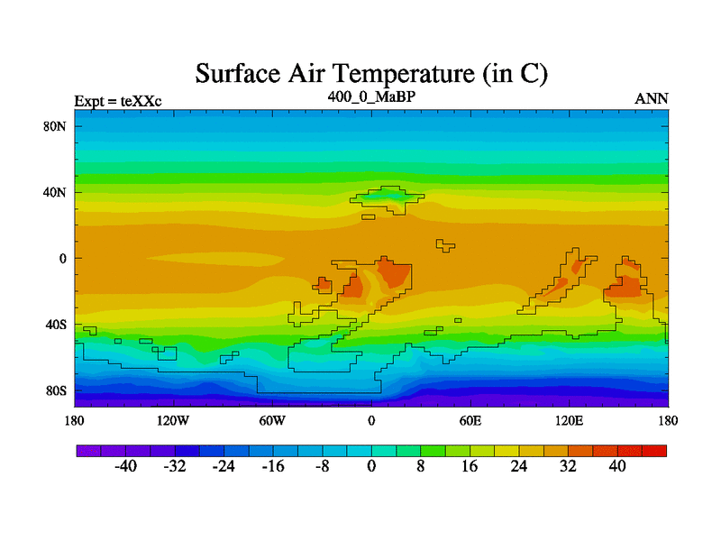 This is the 400.0 Ma simulation using the Scotese palaeogeographies.