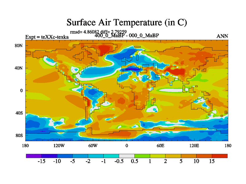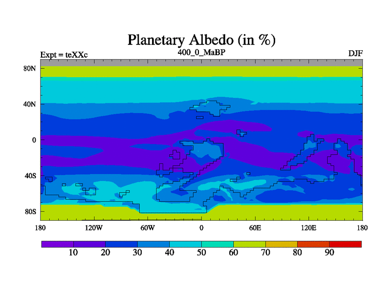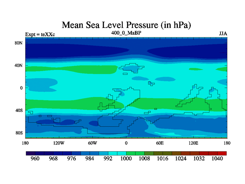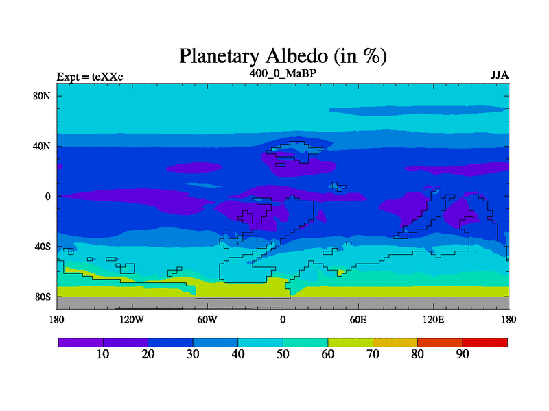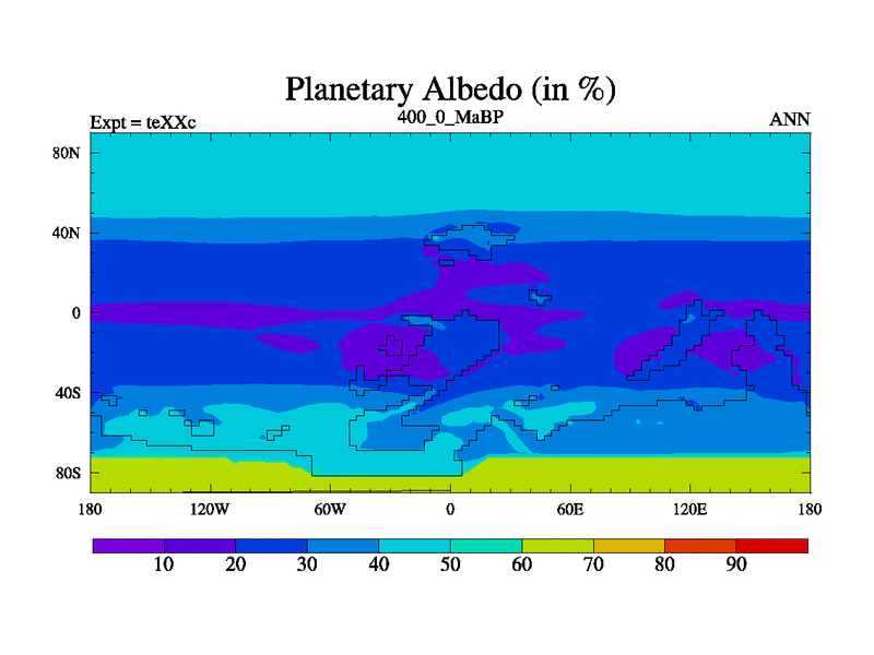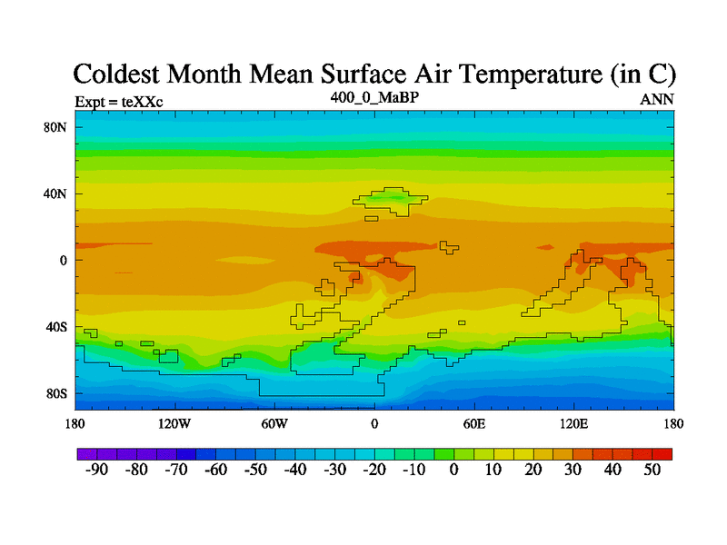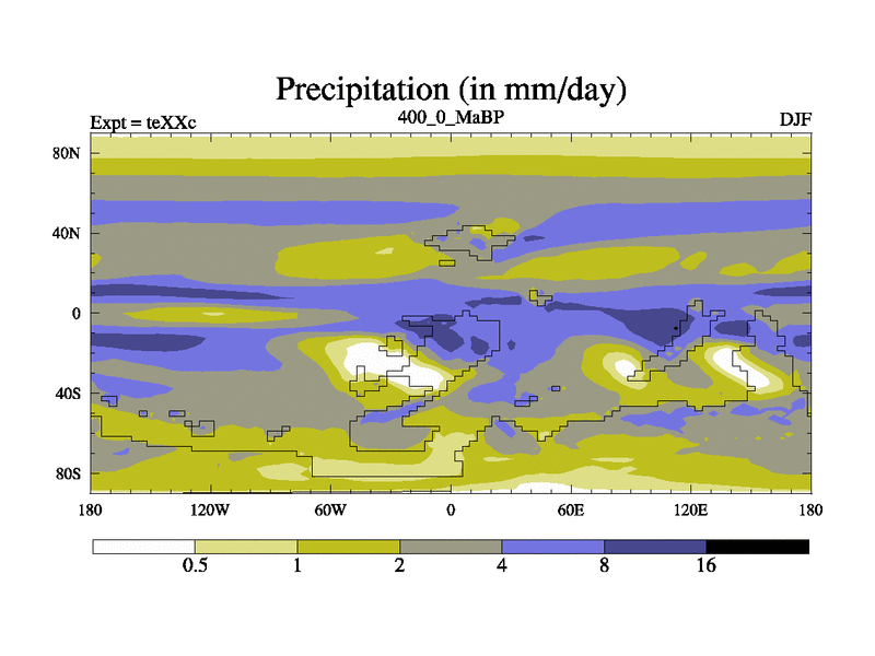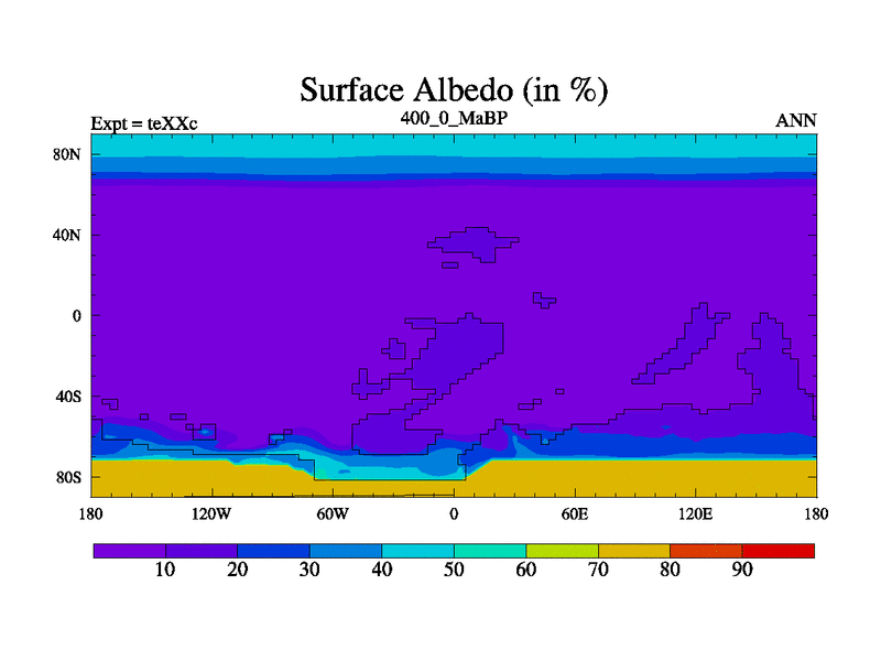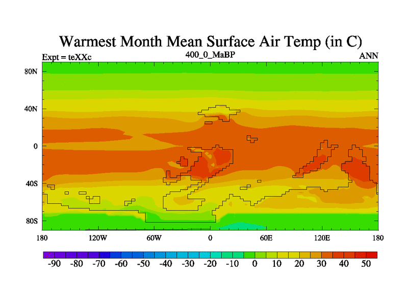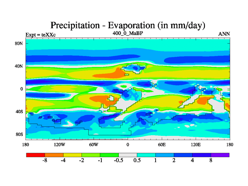 This is the 400.0 Ma simulation using the Scotese palaeogeographies.