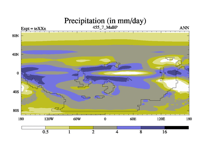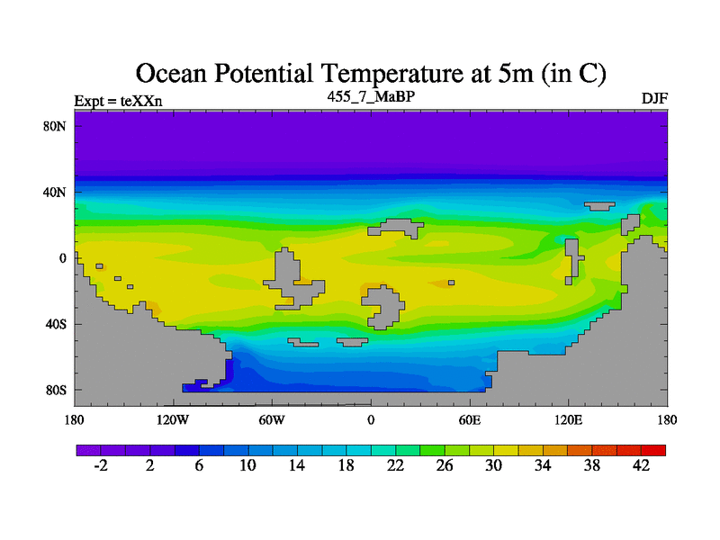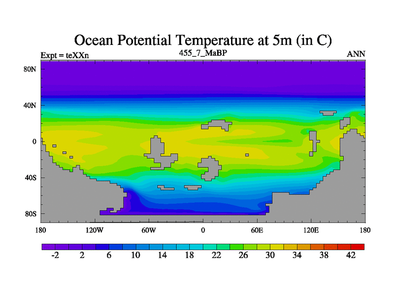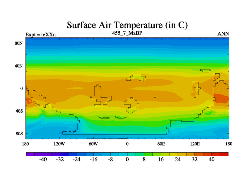 This is the 455.7 Ma simulation using the Scotese palaeogeographies.