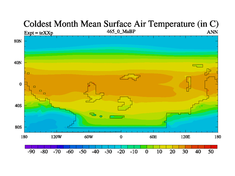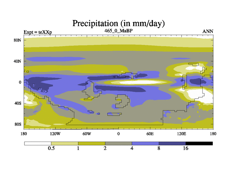 This is the 465.0 Ma simulation using the Scotese palaeogeographies.