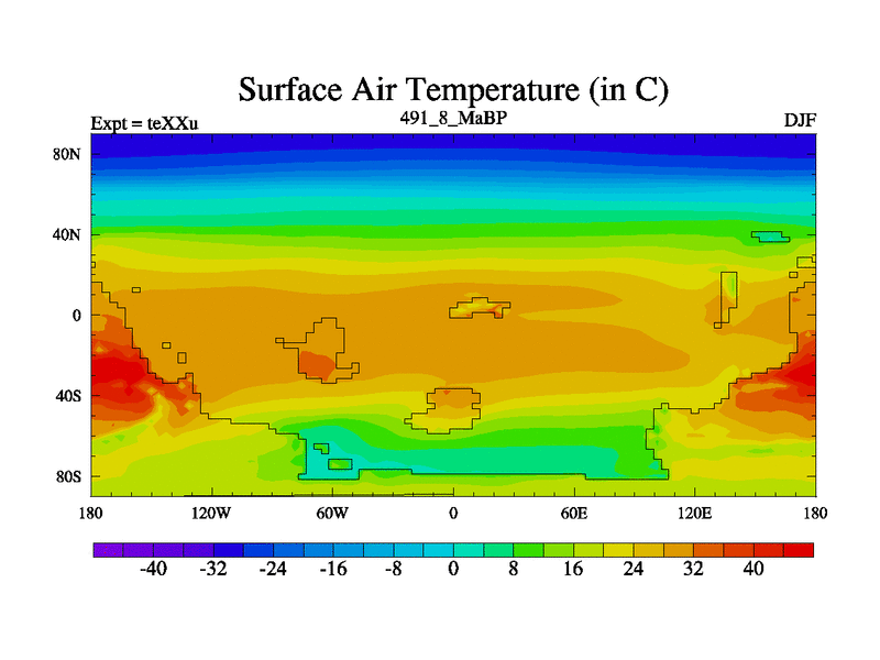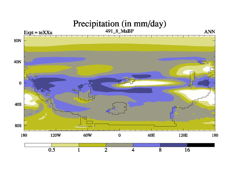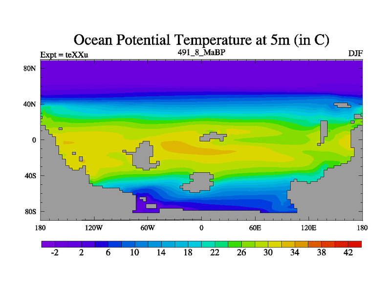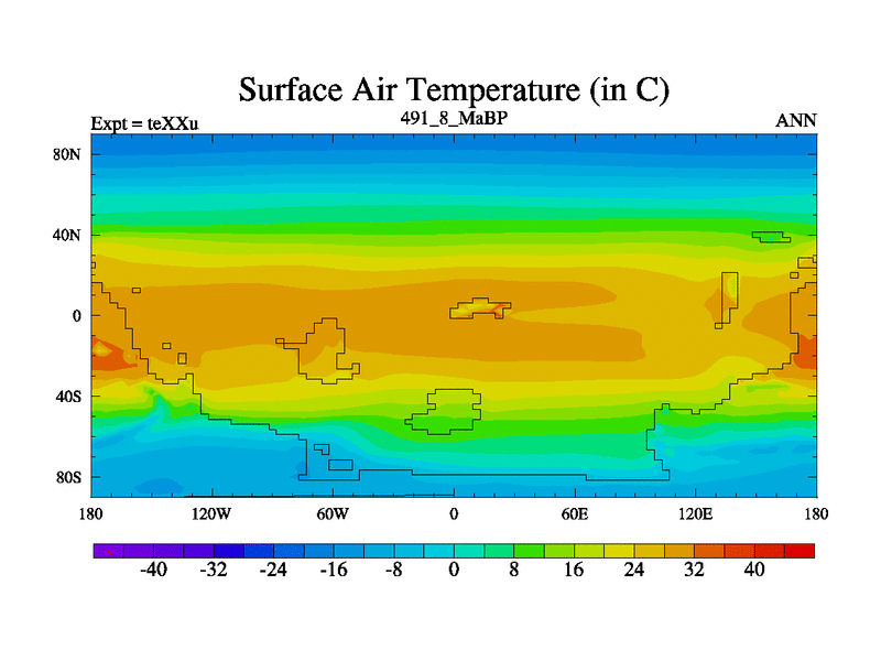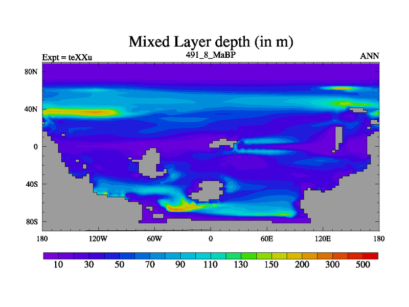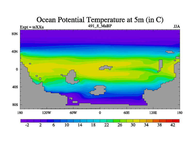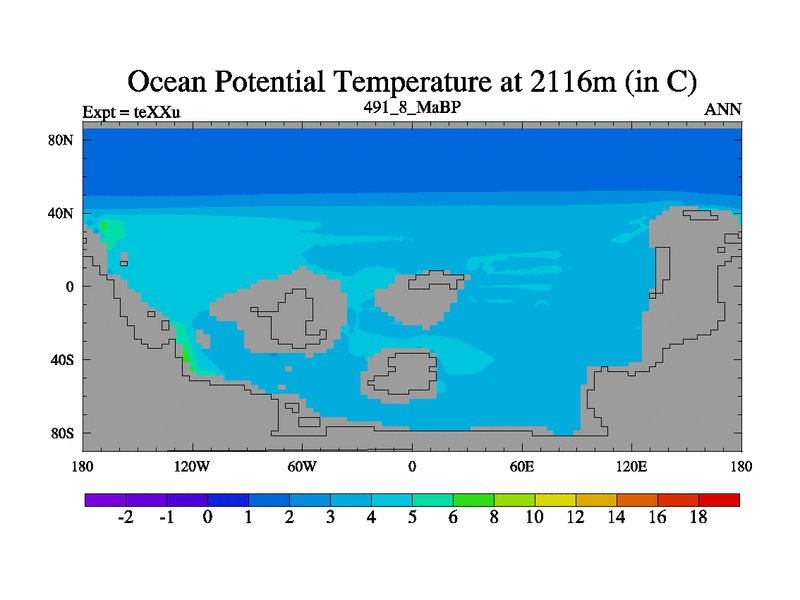 This is the 491.8 Ma simulation using the Scotese palaeogeographies.