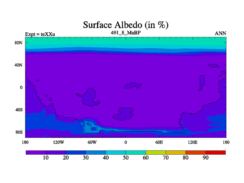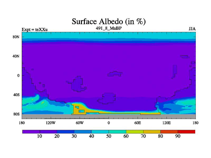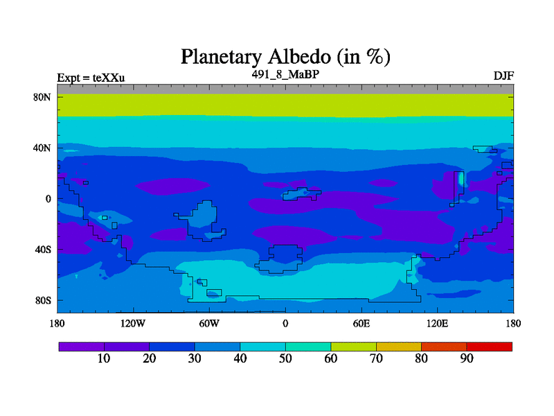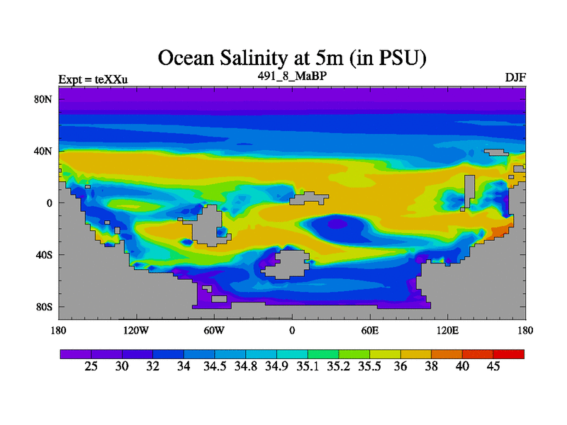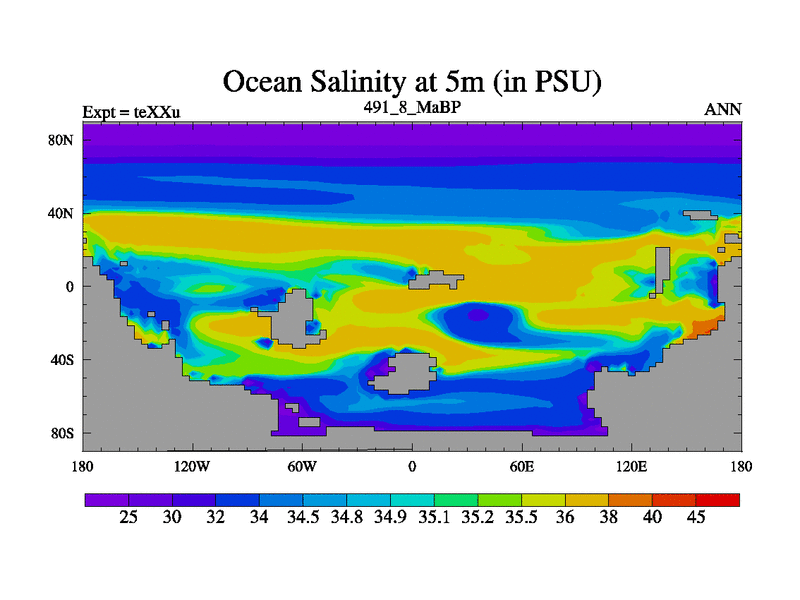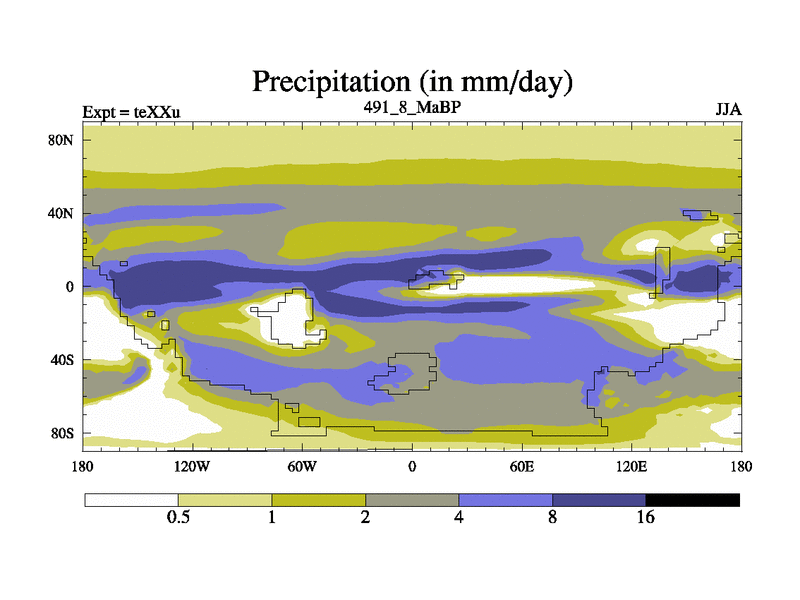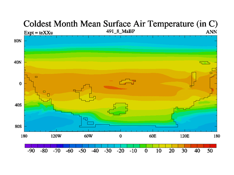This is the 491.8 Ma simulation using the Scotese palaeogeographies.