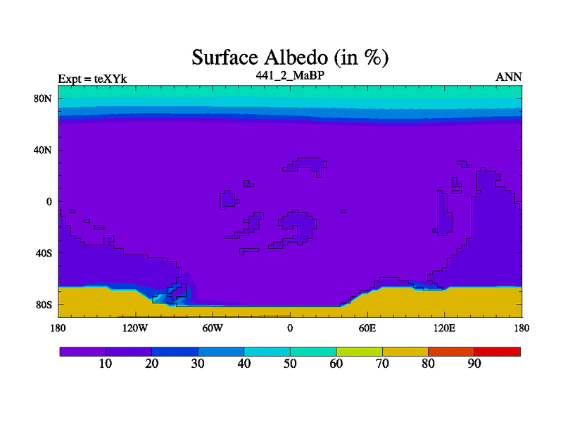 This is the 441.2 Ma simulation using the Scotese palaeogeographies. Extension of the tex[f..j] series.