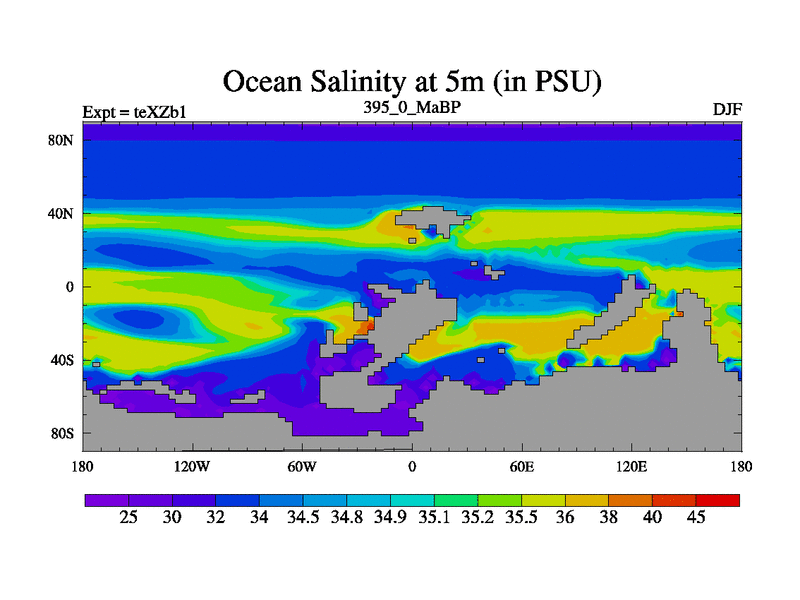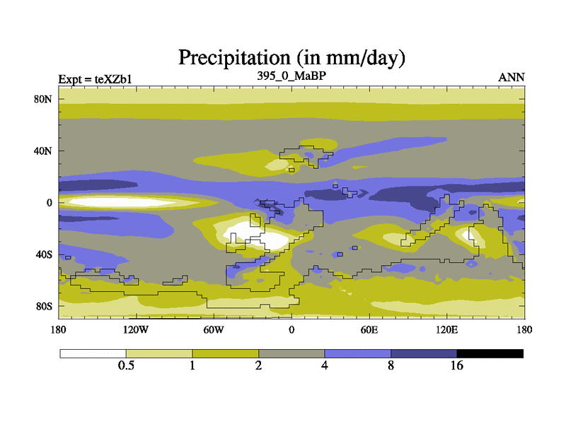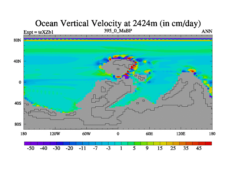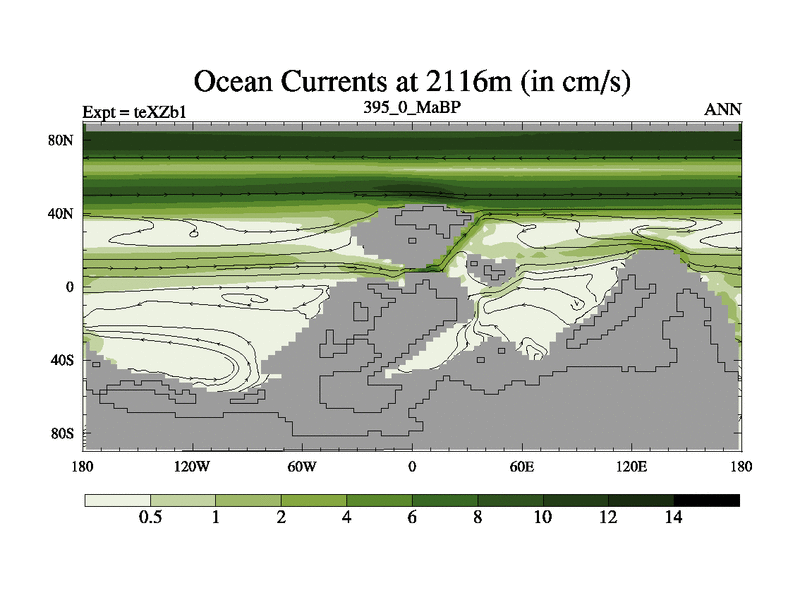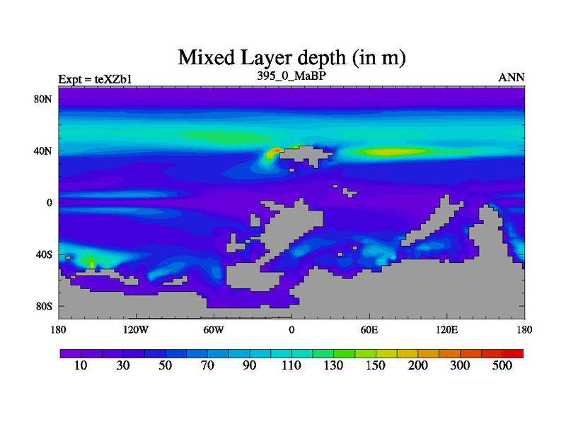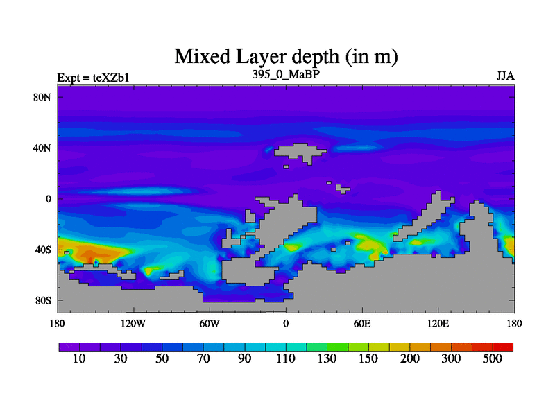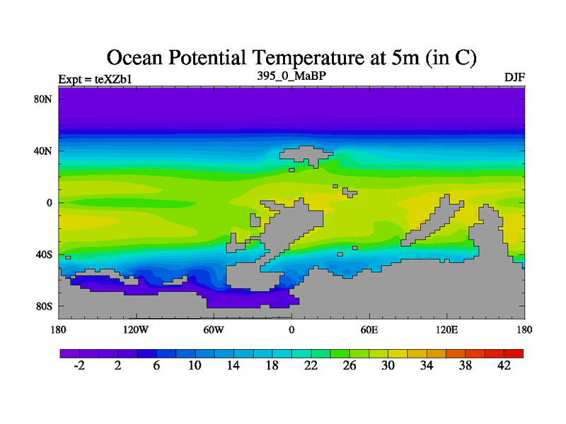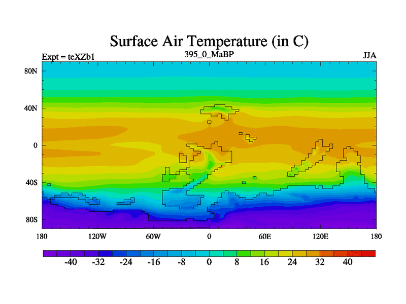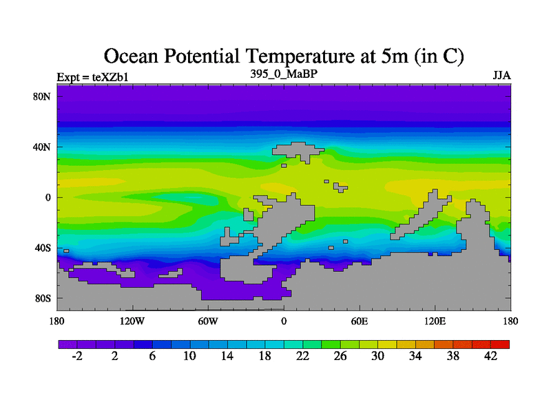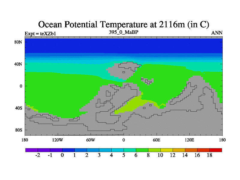 This is the 395.0 Ma simulation using the Scotese palaeogeographies. Extension of the tex[f..j] series.
