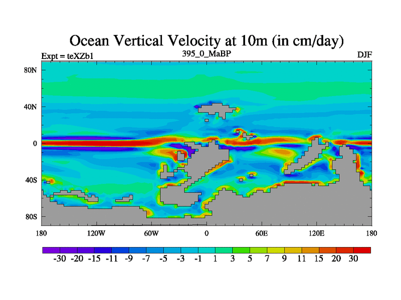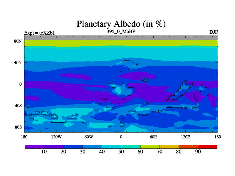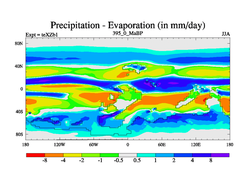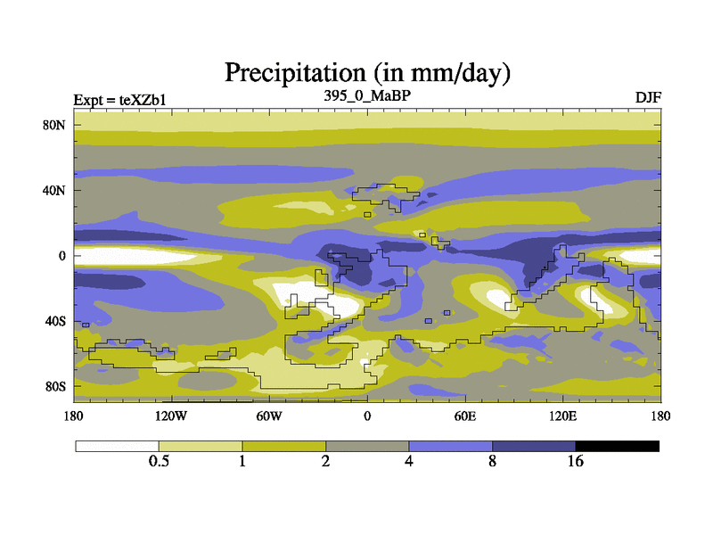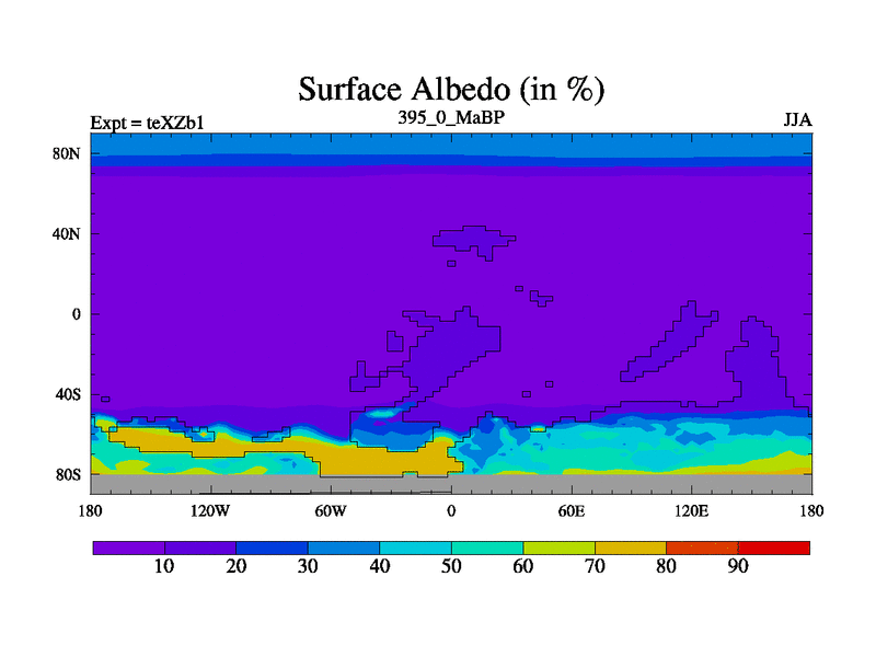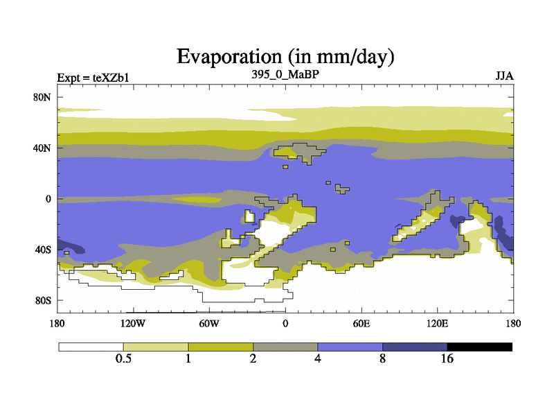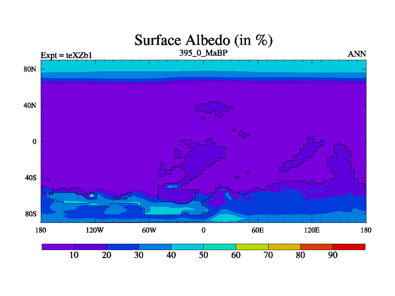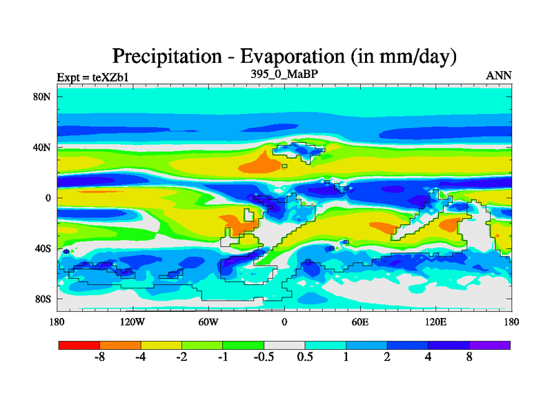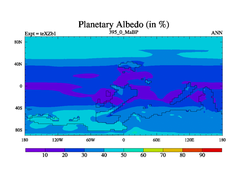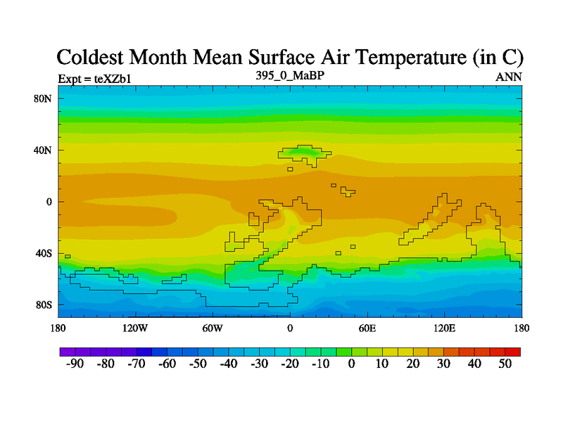 This is the 395.0 Ma simulation using the Scotese palaeogeographies. Extension of the tex[f..j] series.