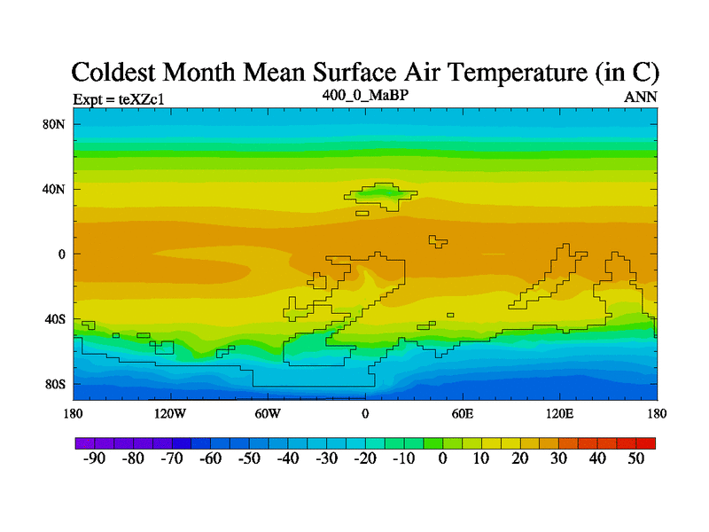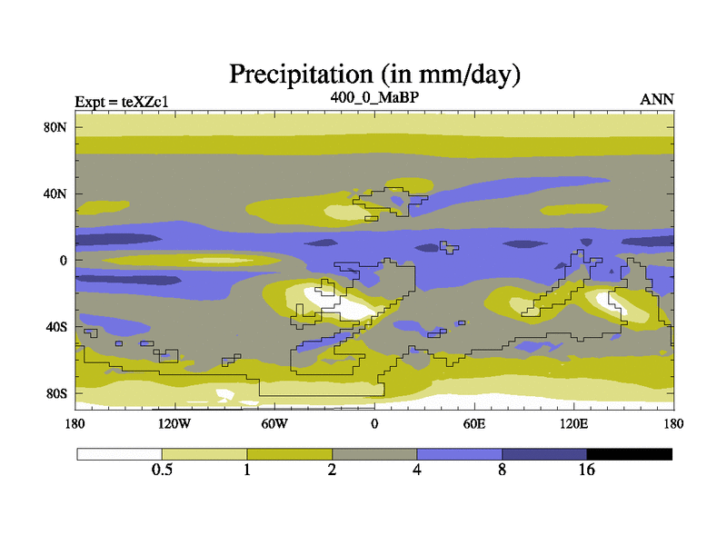 This is the 400.0 Ma simulation using the Scotese palaeogeographies. Extension of the tex[f..j] series.