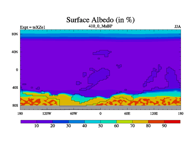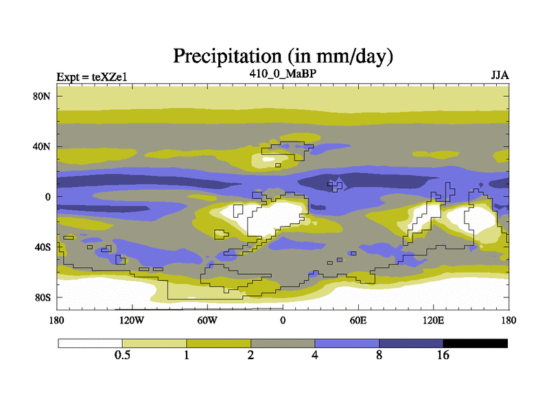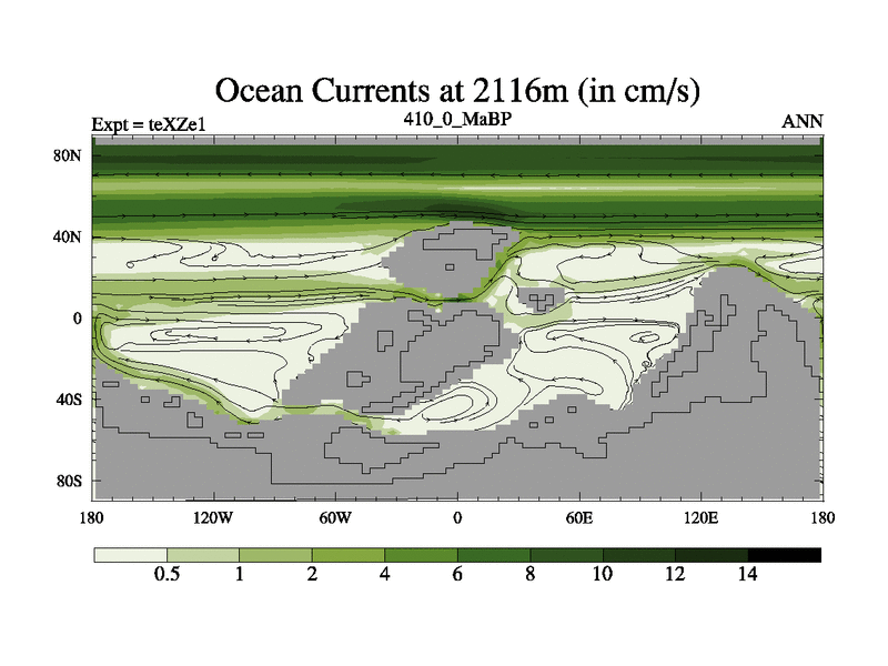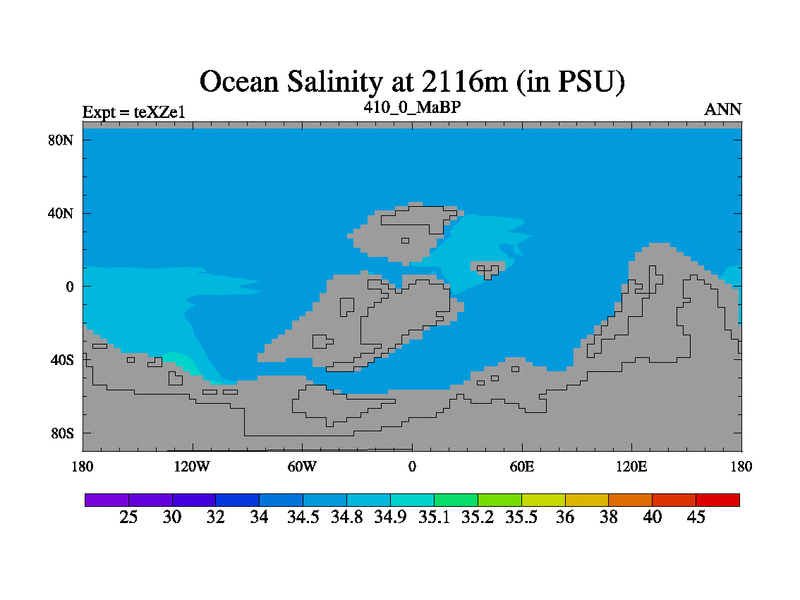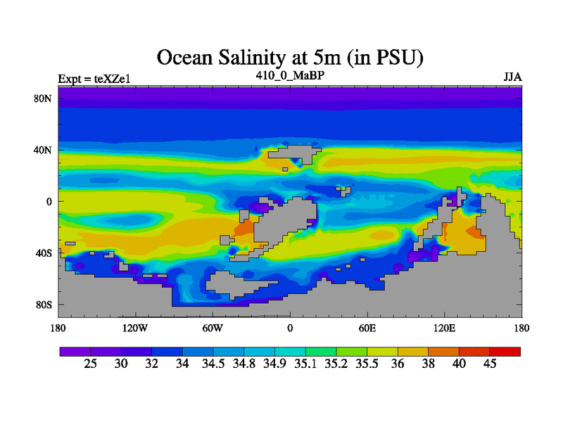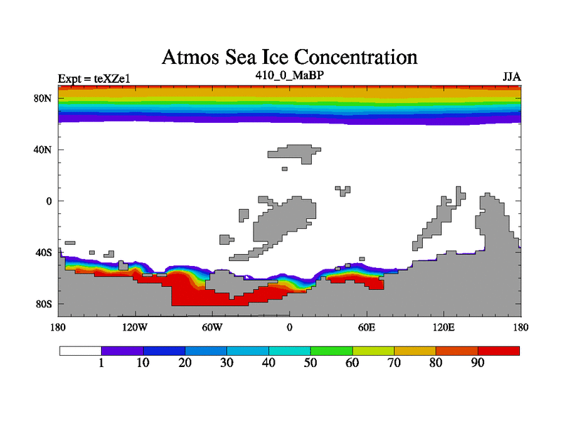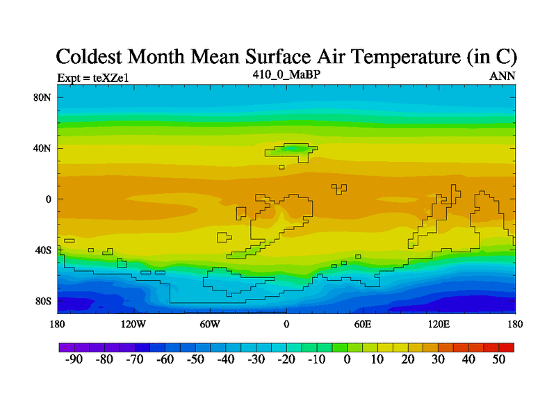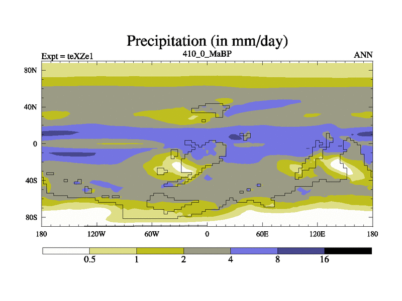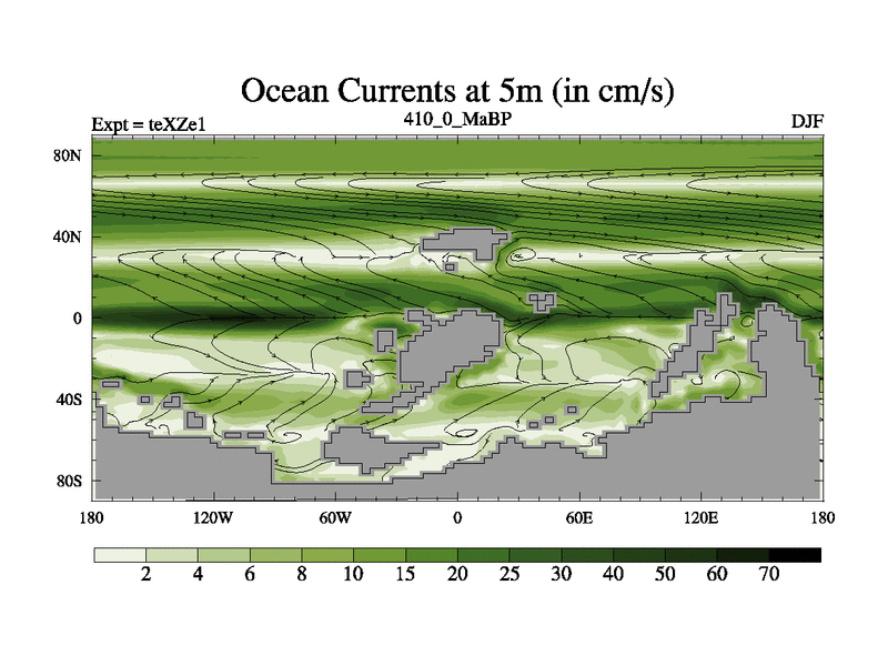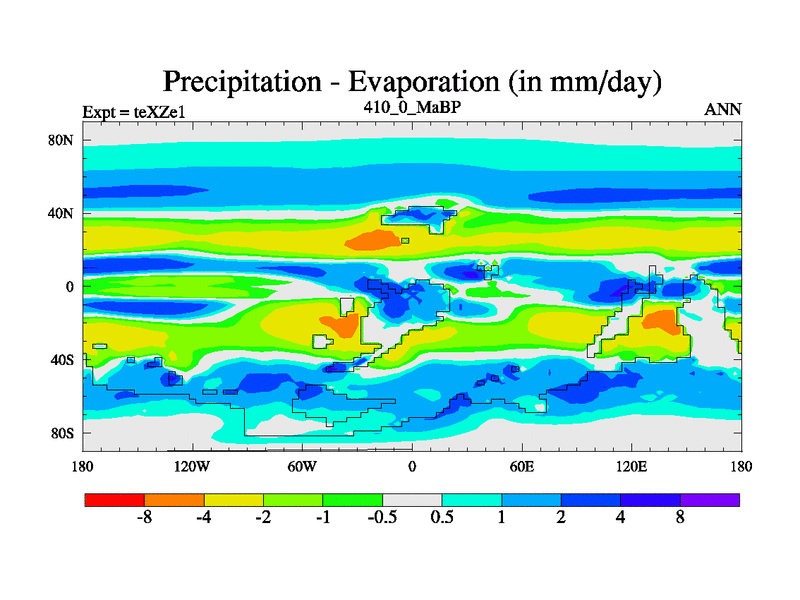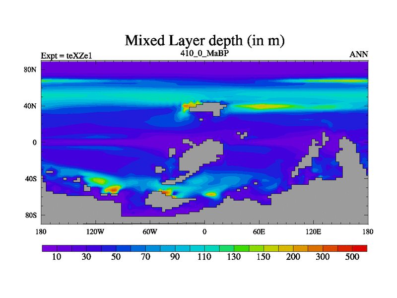 This is the 410.0 Ma simulation using the Scotese palaeogeographies. Extension of the tex[f..j] series.