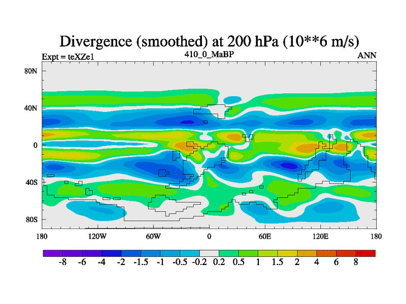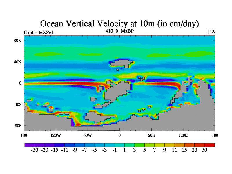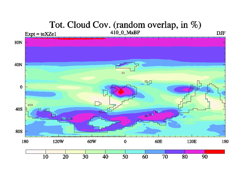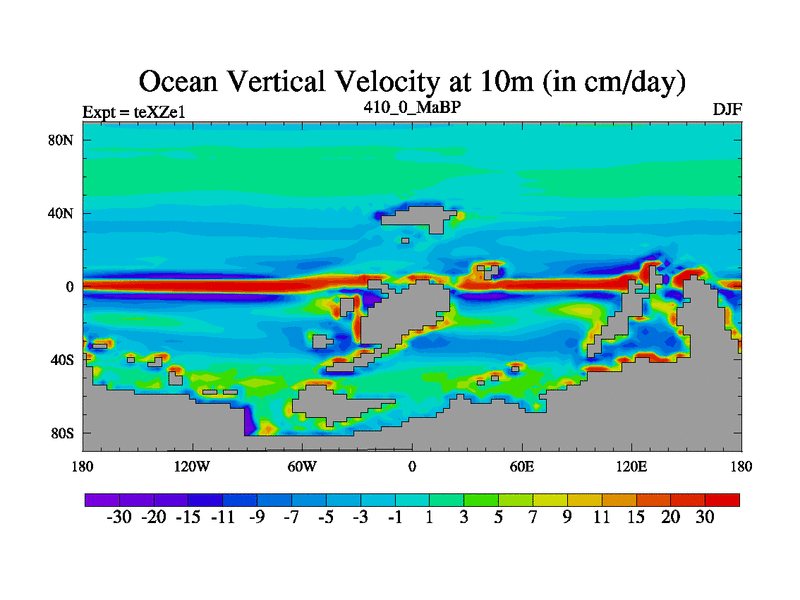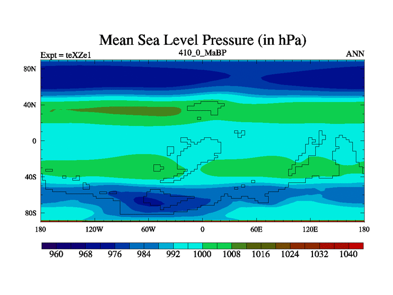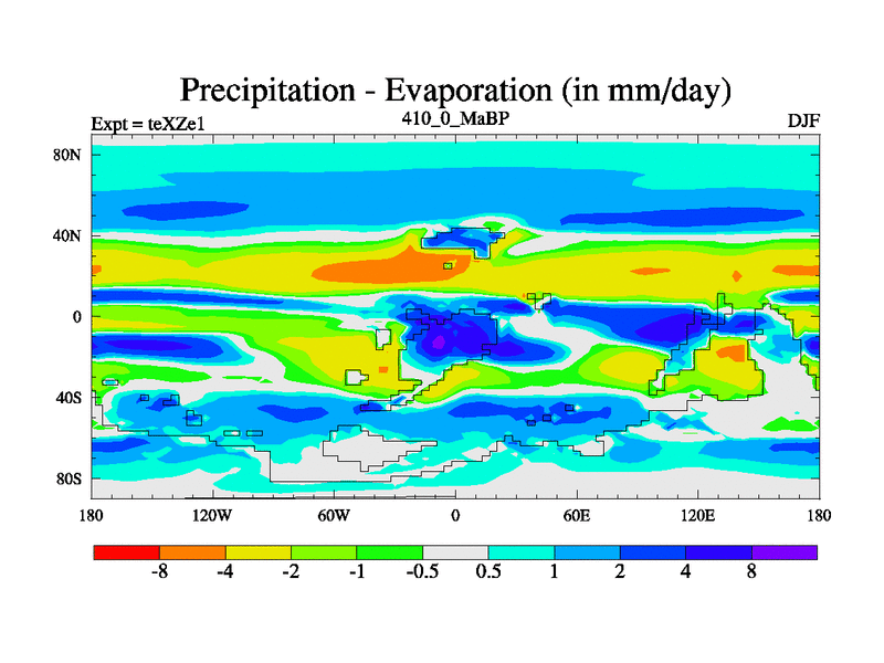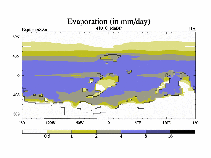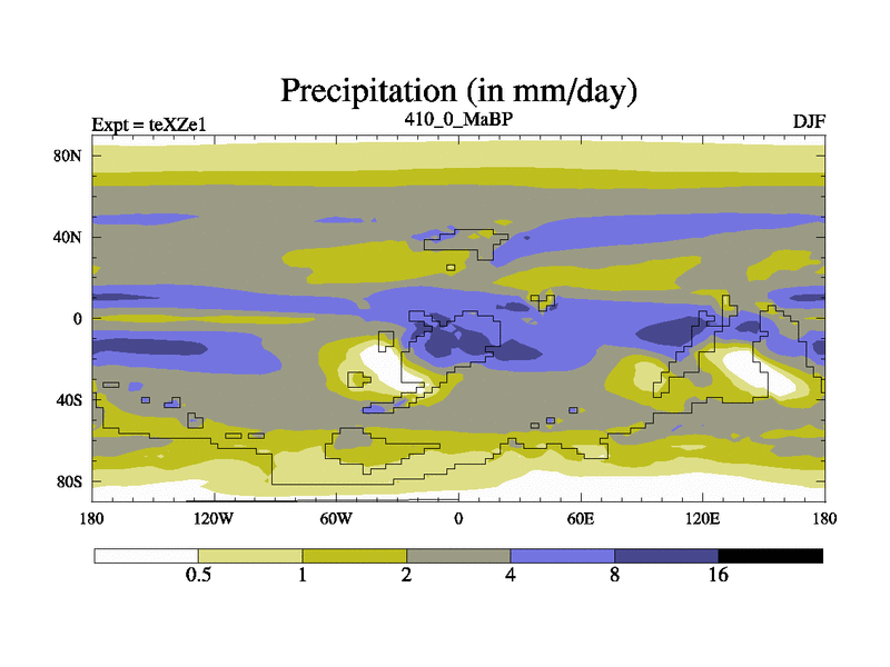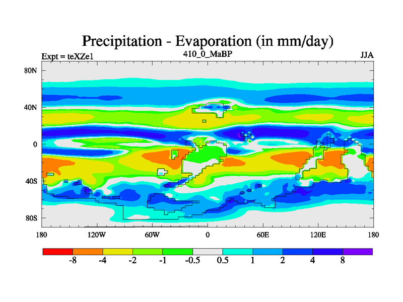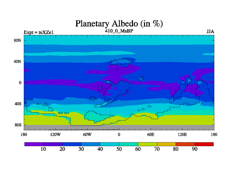 This is the 410.0 Ma simulation using the Scotese palaeogeographies. Extension of the tex[f..j] series.