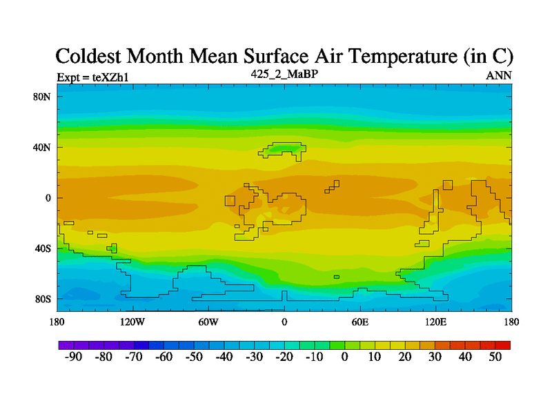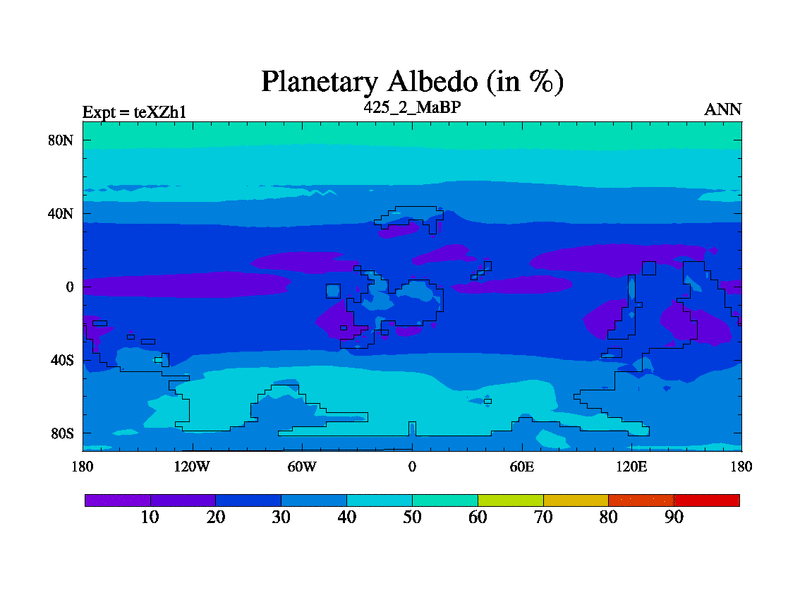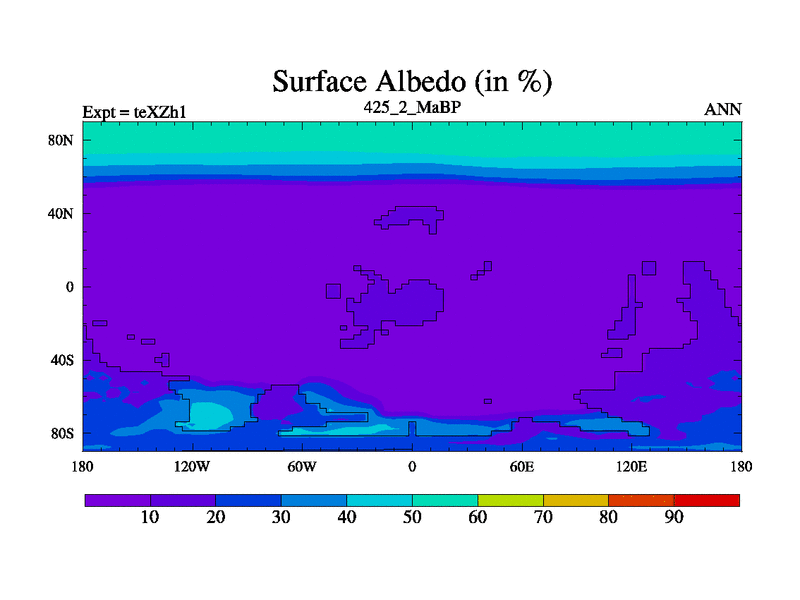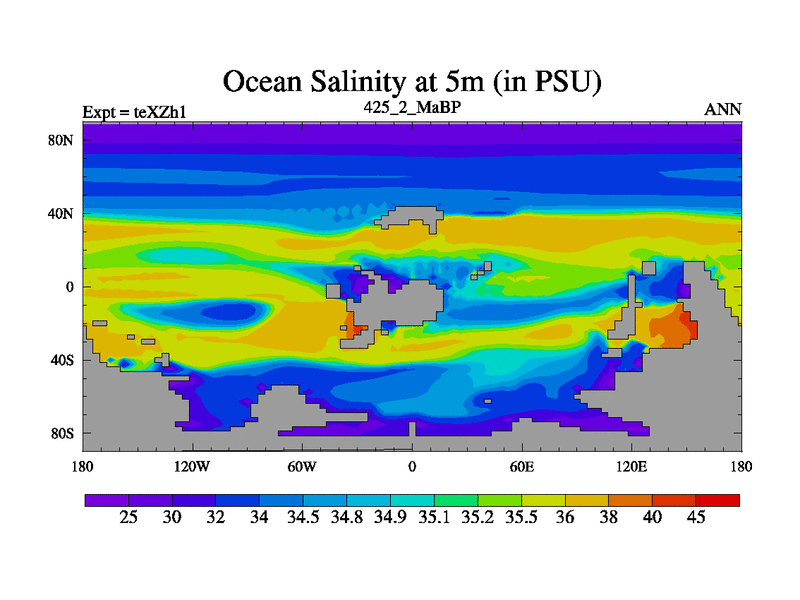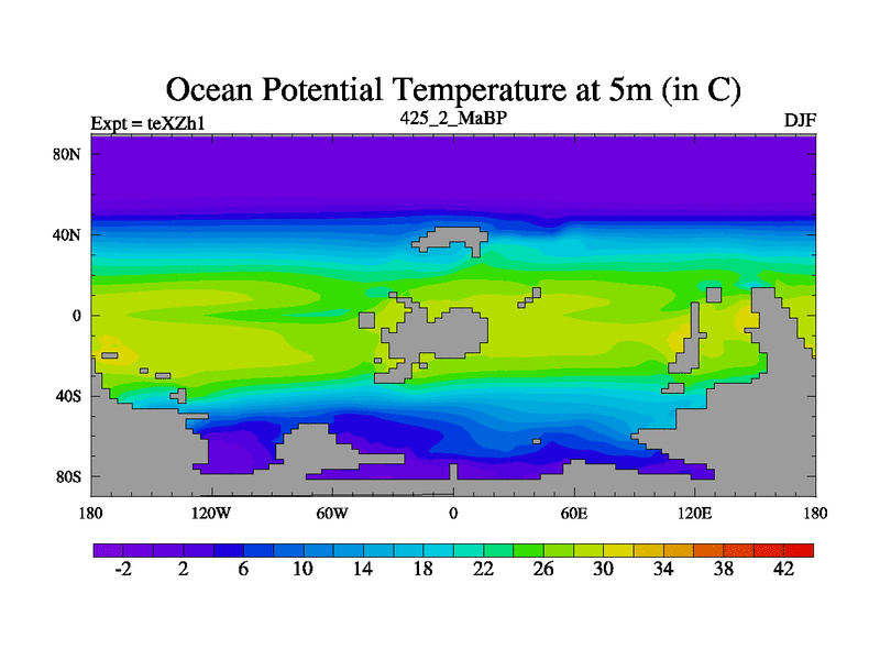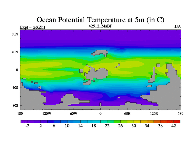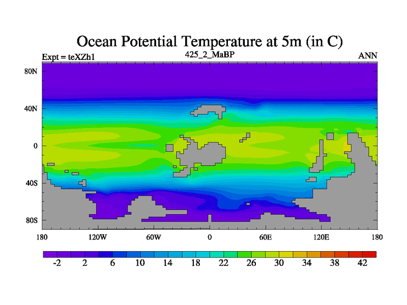 This is the 425.2 Ma simulation using the Scotese palaeogeographies. Extension of the tex[f..j] series.