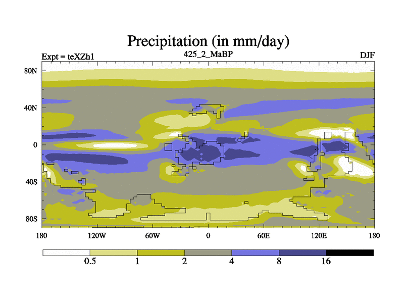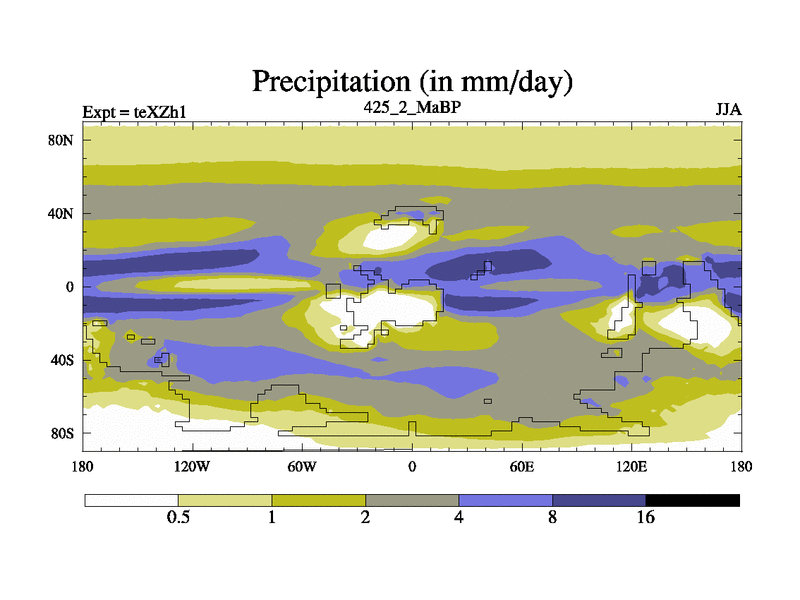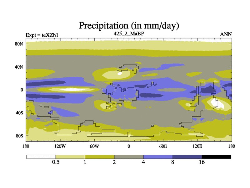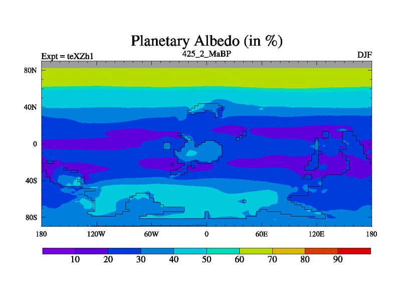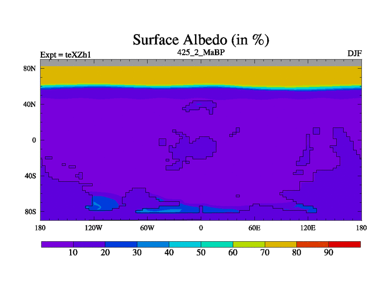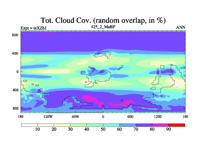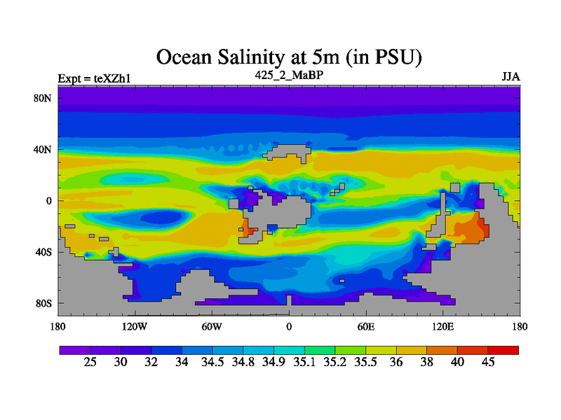 This is the 425.2 Ma simulation using the Scotese palaeogeographies. Extension of the tex[f..j] series.