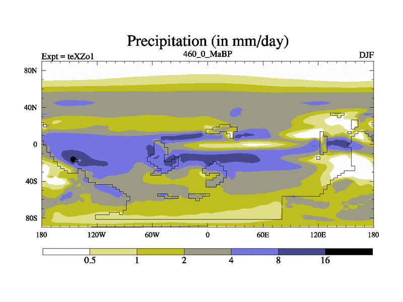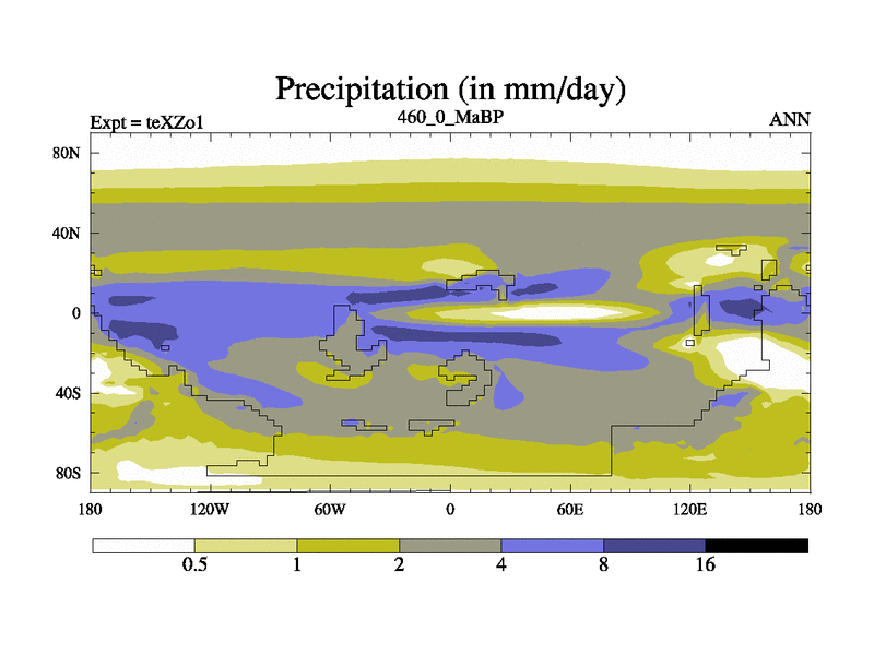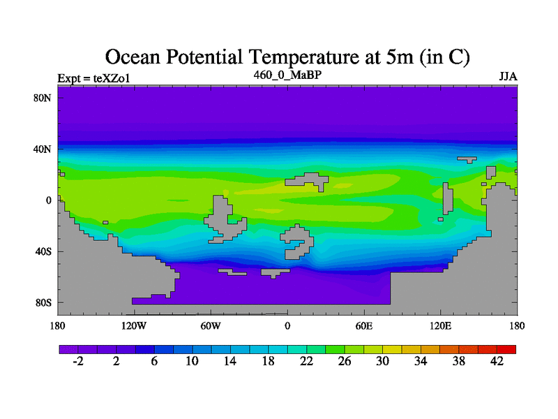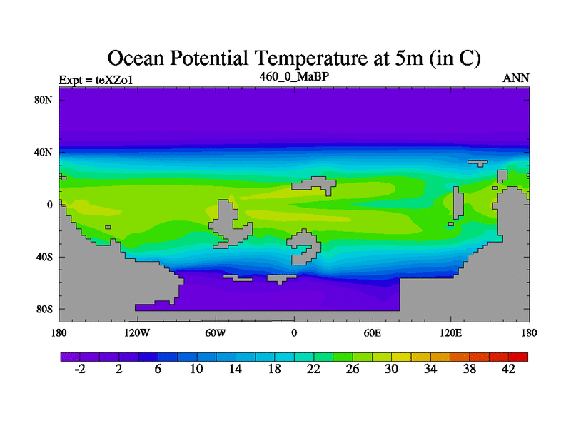 This is the 460.0 Ma simulation using the Scotese palaeogeographies. Extension of the tex[f..j] series.
