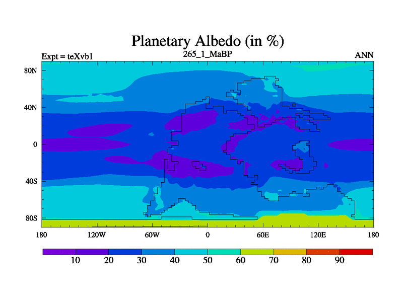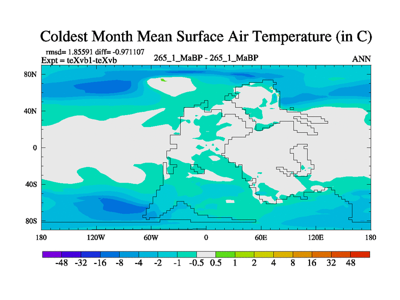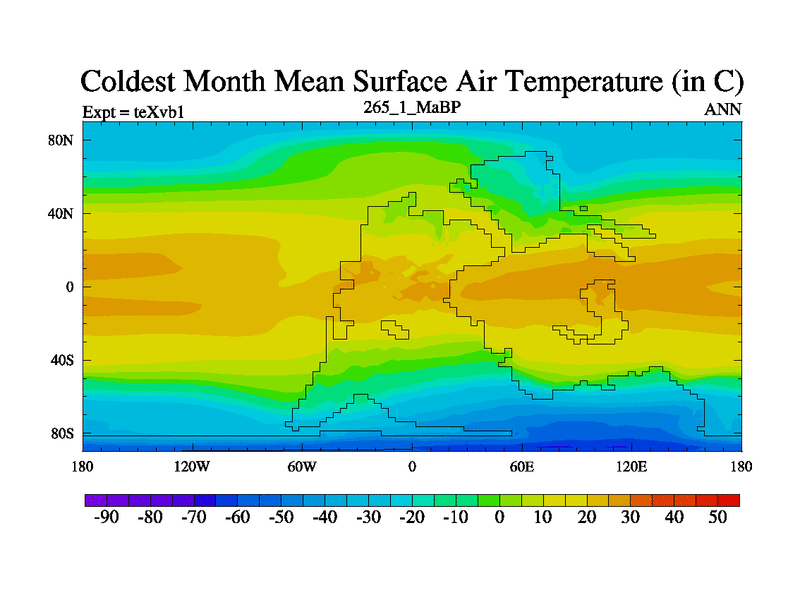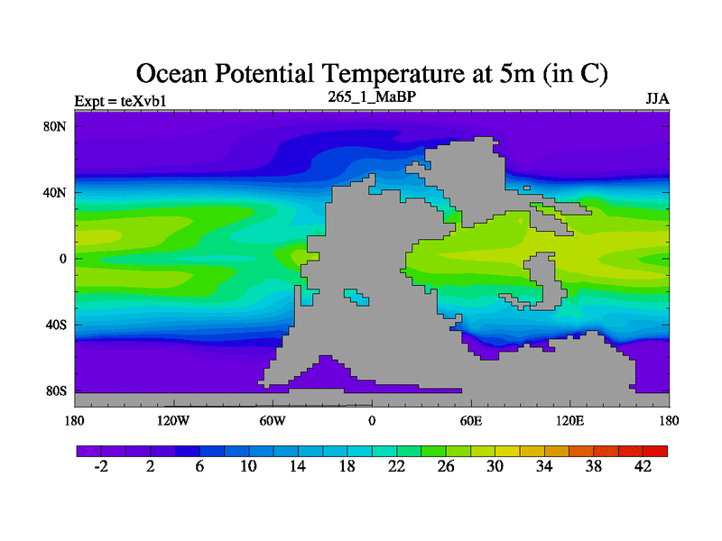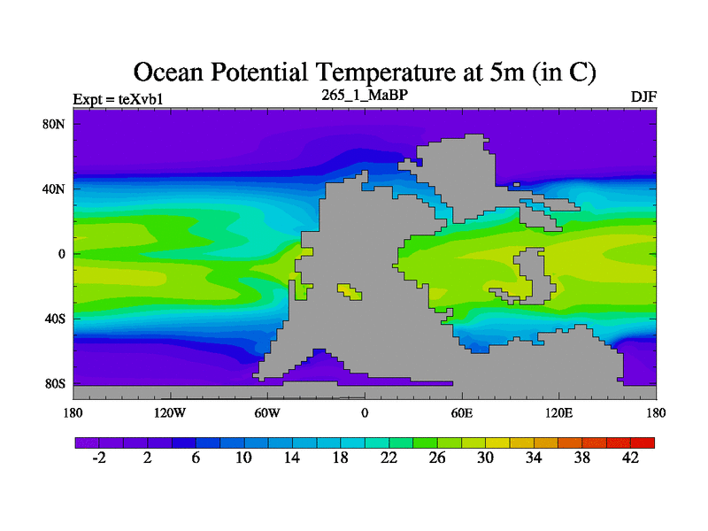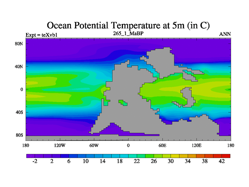 This is the 265.1 Ma simulation using the Scotese palaeogeographies.