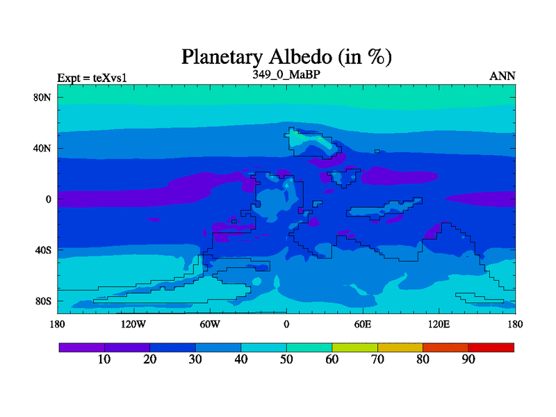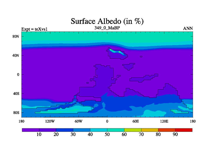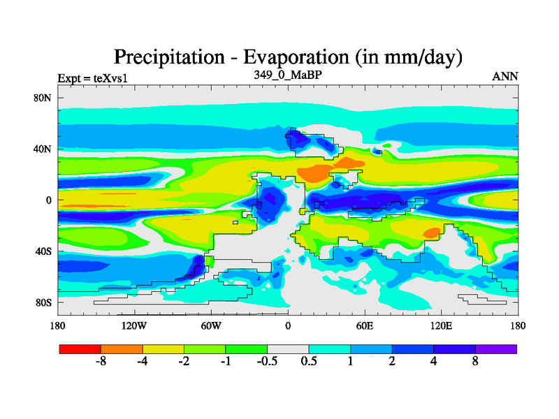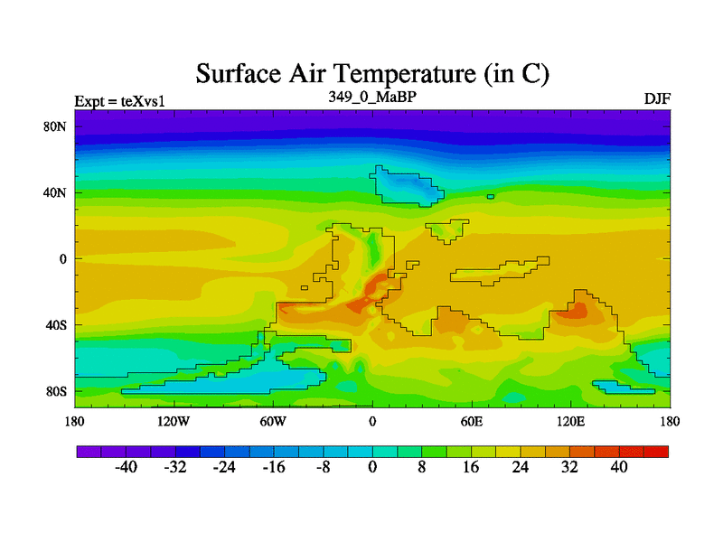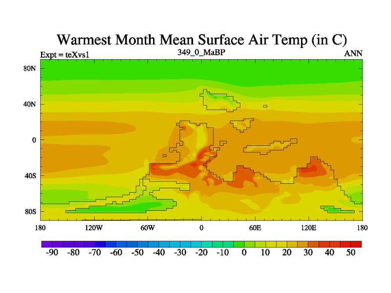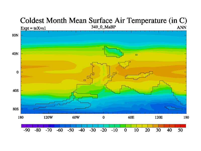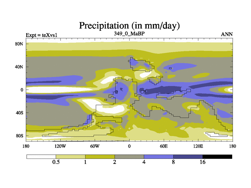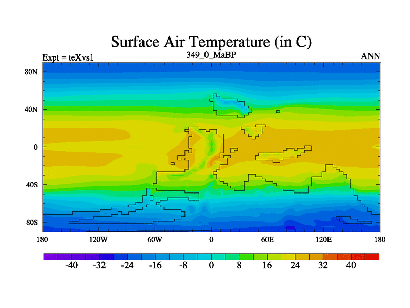 This is the 349.0 Ma simulation using the Scotese palaeogeographies.