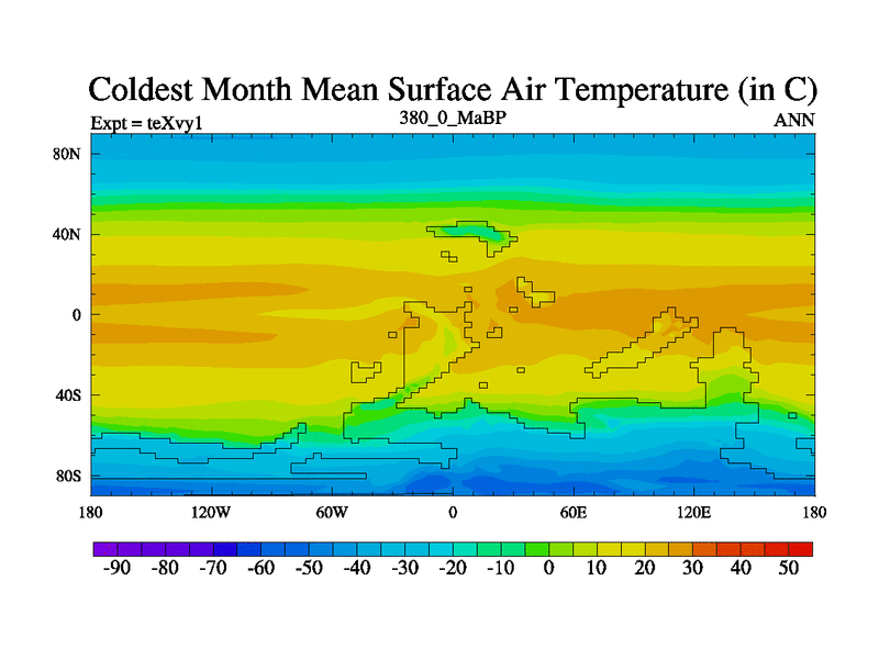 This is the 380.0 Ma simulation using the Scotese palaeogeographies.