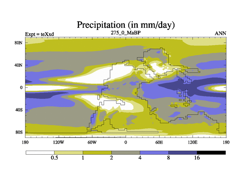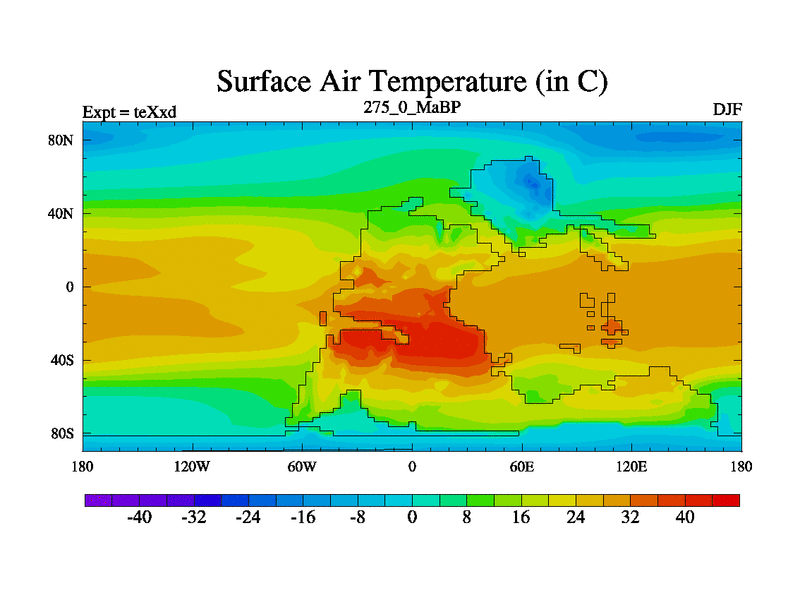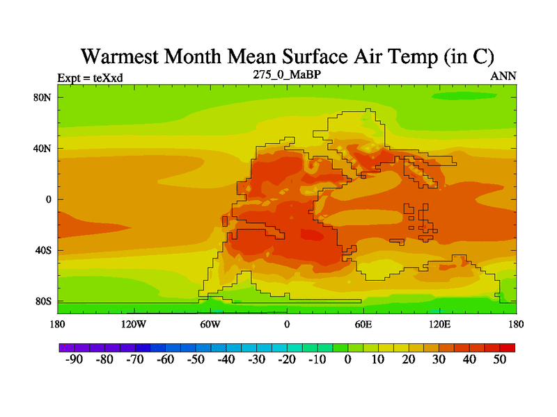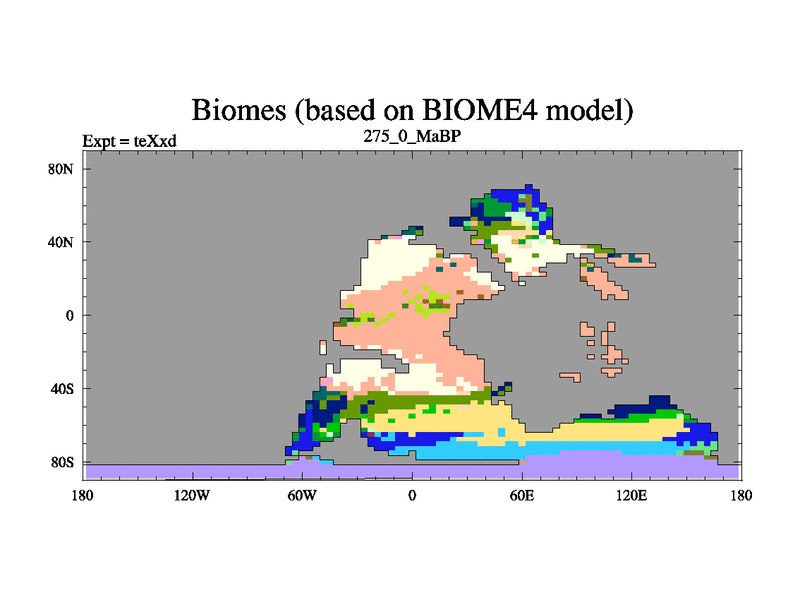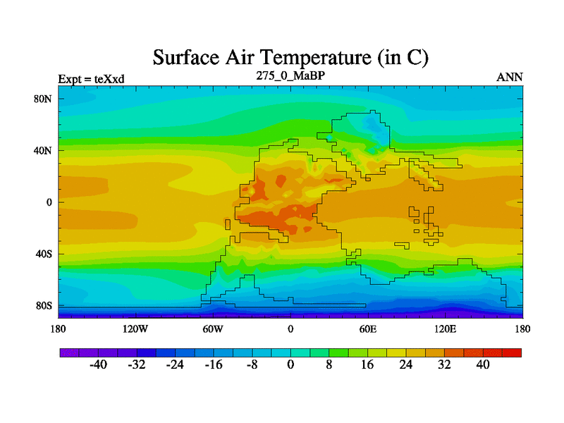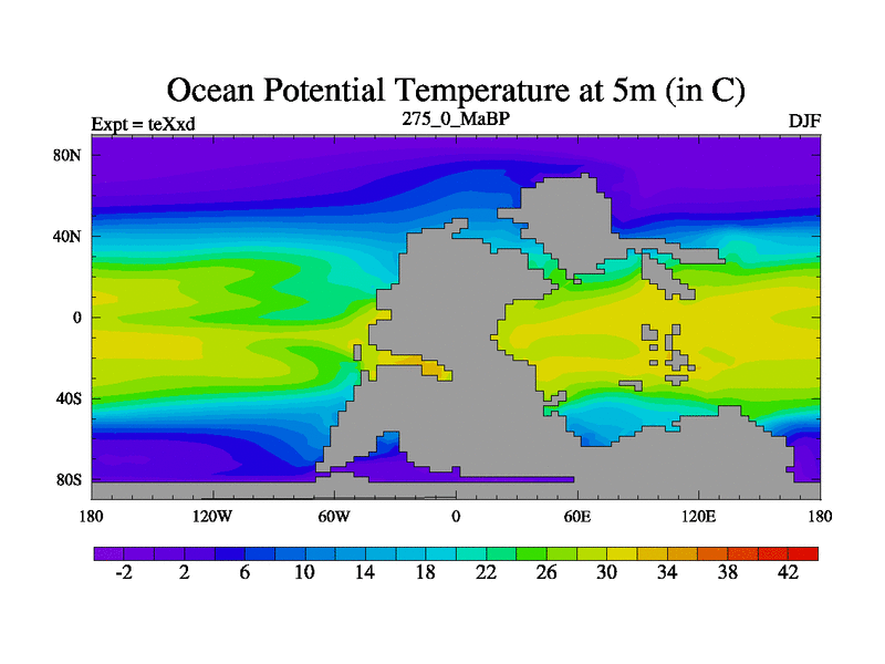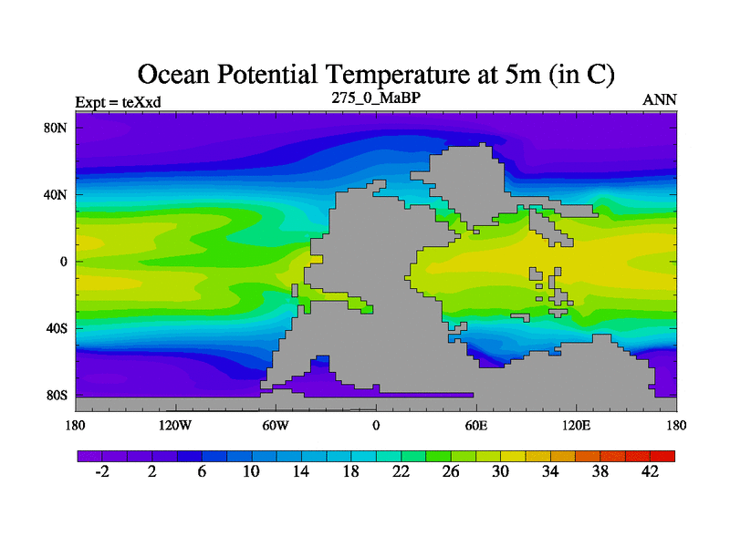 This is the 275.0 Ma simulation using the Scotese palaeogeographies.