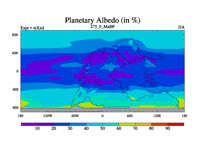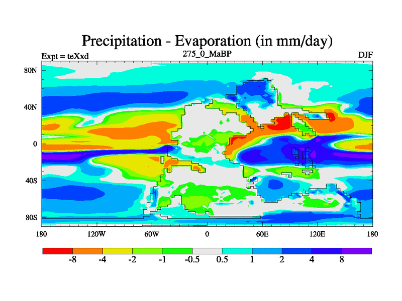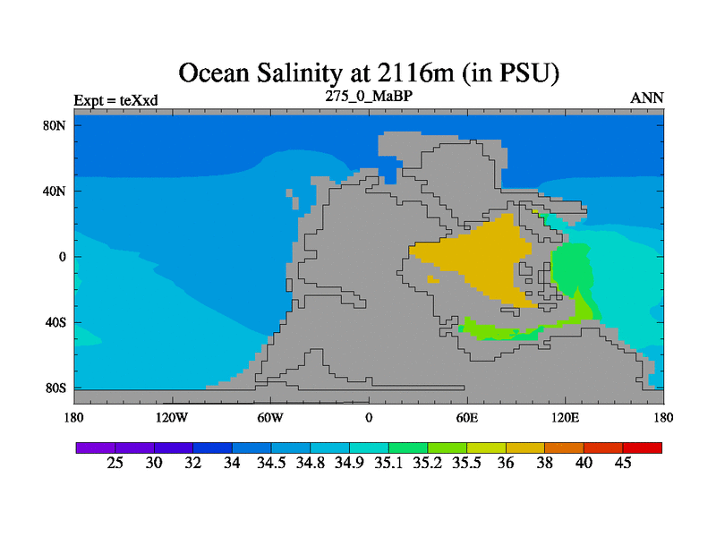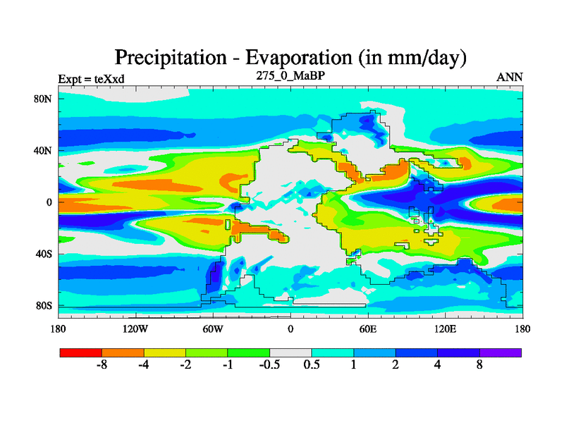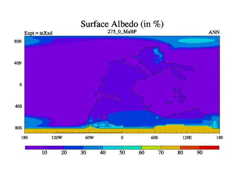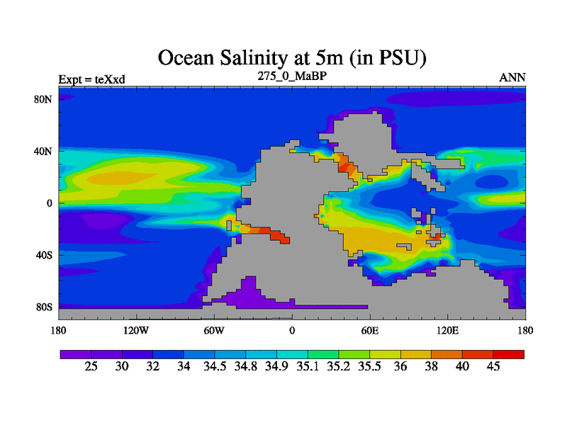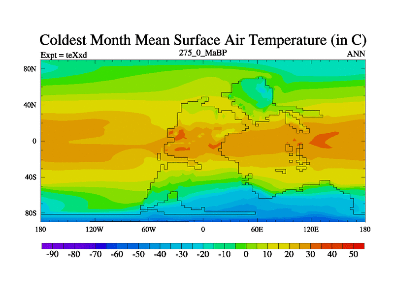 This is the 275.0 Ma simulation using the Scotese palaeogeographies.