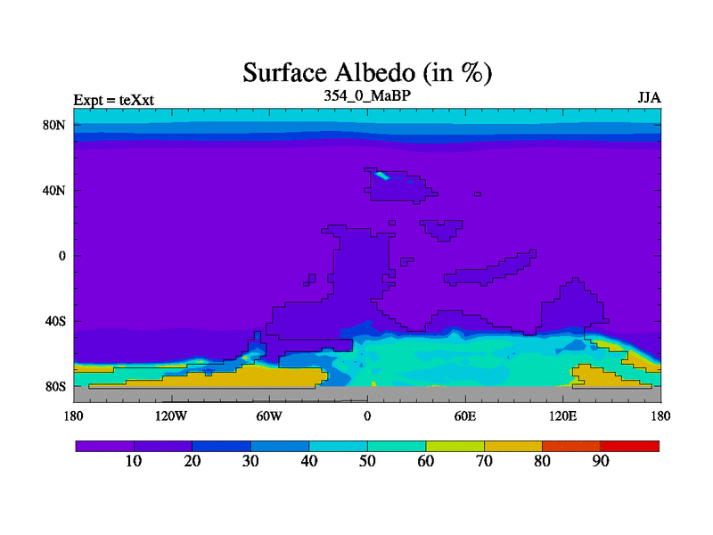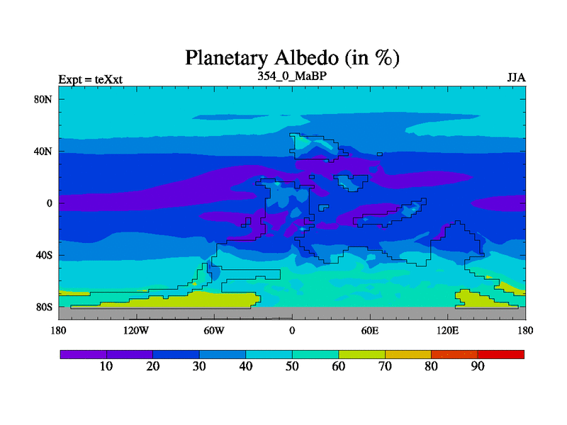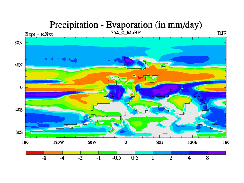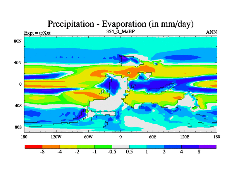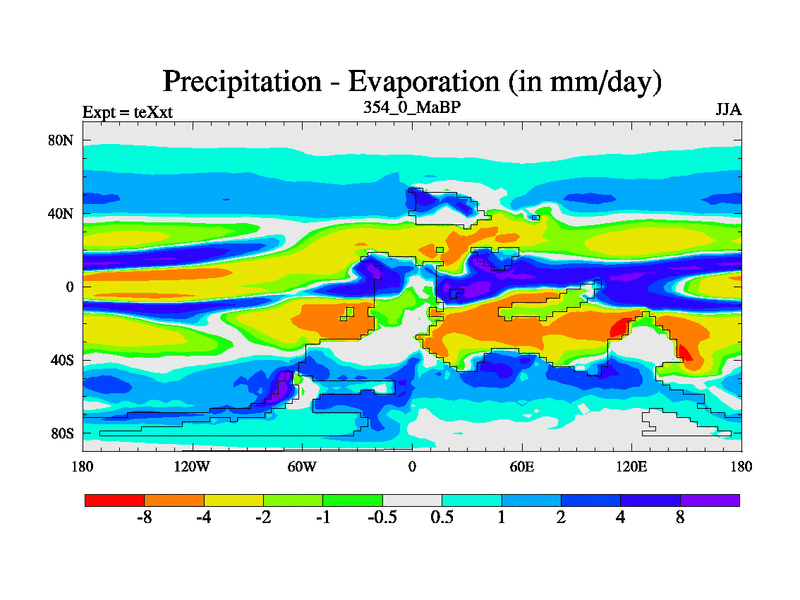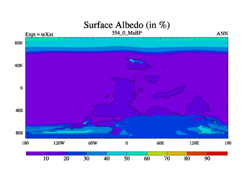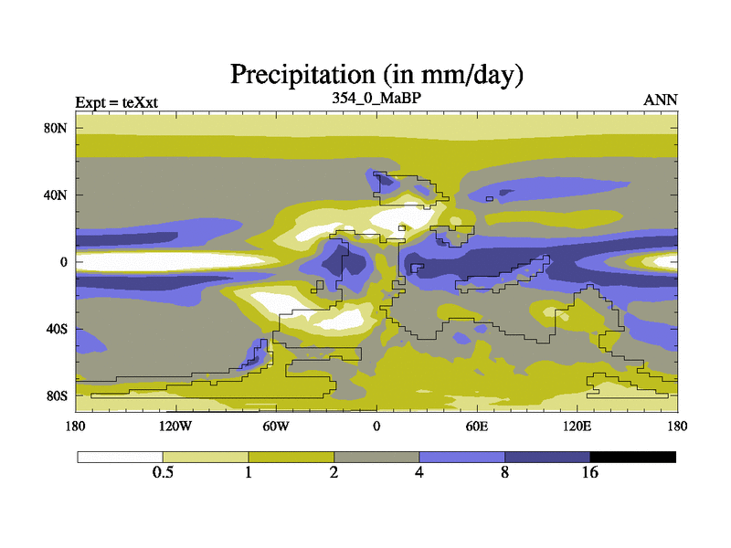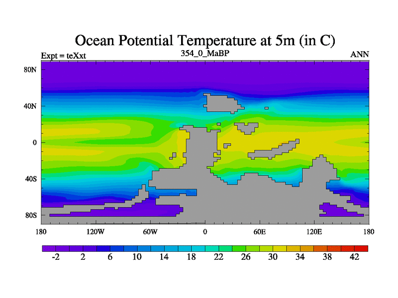 This is the 354.0 Ma simulation using the Scotese palaeogeographies.