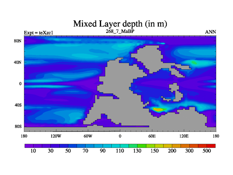 This is the 268.7 Ma simulation using the Scotese palaeogeographies. Extension of the tex[f..j] series.