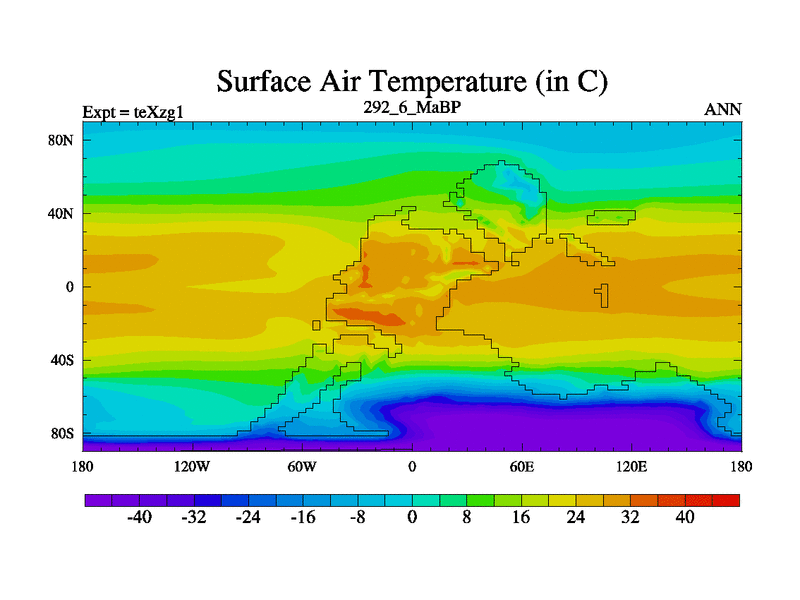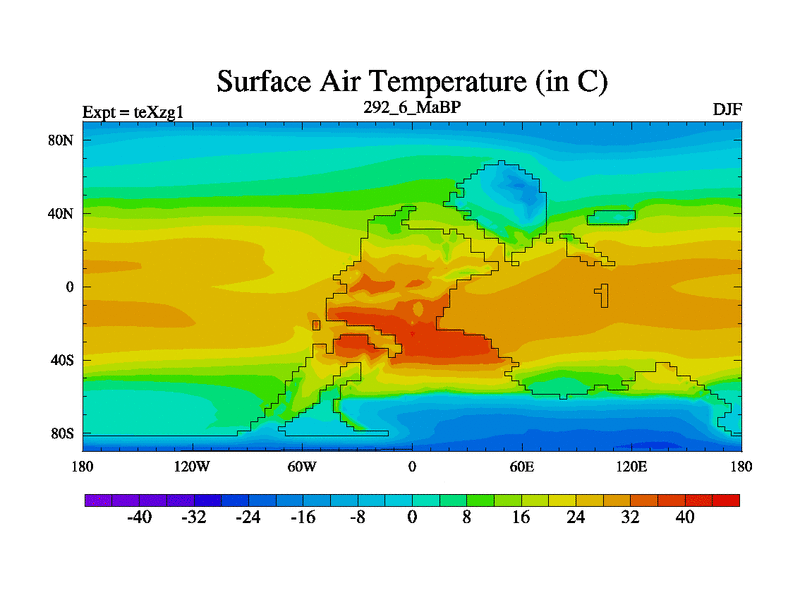 This is the 292.6 Ma simulation using the Scotese palaeogeographies. Extension of the tex[f..j] series.