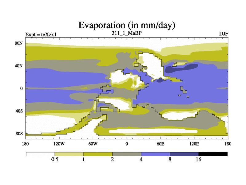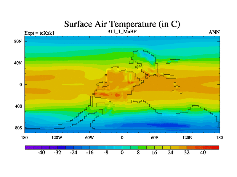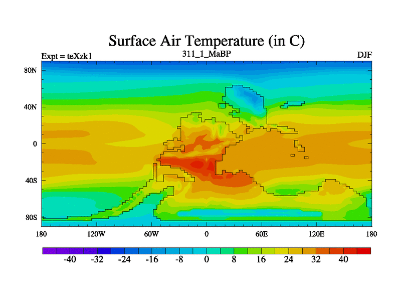 This is the 311.1 Ma simulation using the Scotese palaeogeographies. Extension of the tex[f..j] series.